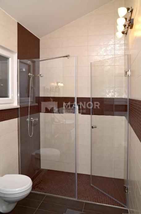 Na katu se nalaze tri spavaće sobe, dvije kupaonice i terasa.