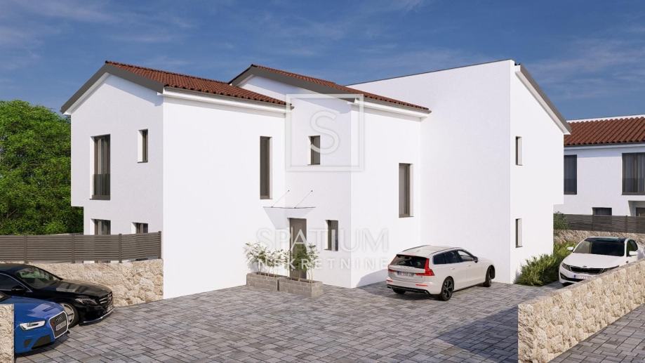 OTOK KRK, MALINSKA, u ponudu smo dobili dvoetažni stan u novogradnji stambene površine 95,38 m2, koji se sastoji od prizemlja i kata, smješten na mirnoj lokaciji s pogledom na more, svega 600 metara udaljen od mora i centra mjesta.