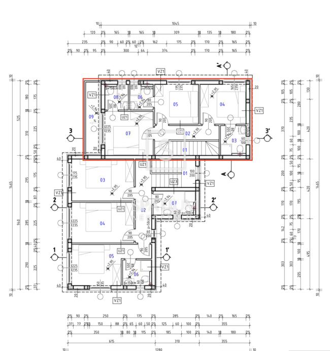 Na katu se nalaze tri spavaće sobe, svaka s vlastitom kupaonicom, hodnik i balkon s pogledom na more. Nekretnini pripadaju i dva parkirna mjesta.