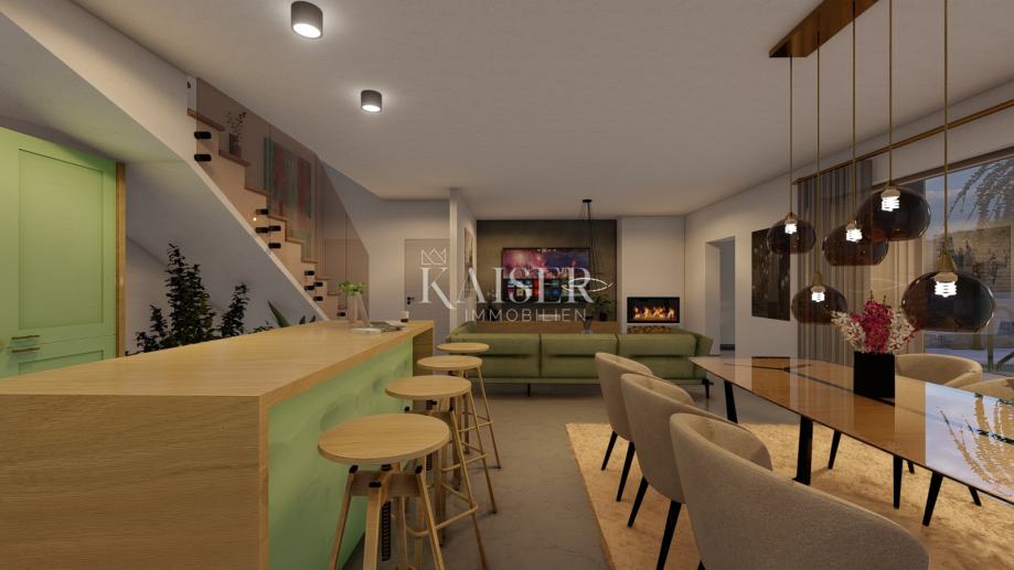 Kaiser immobilien posreduje u prodaji novoizgrađene polovice dvojne kuće sa bazenom na odličnoj lokaciji, u mjestu Malinska na otoku Krku.