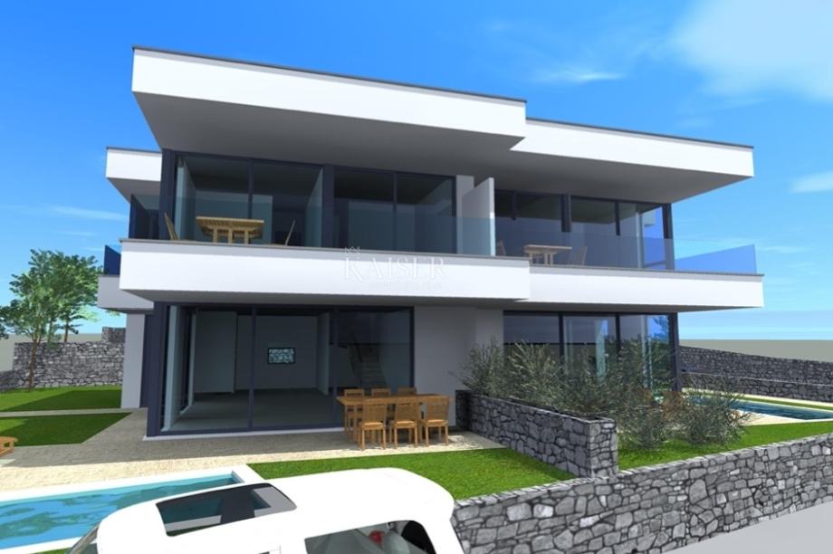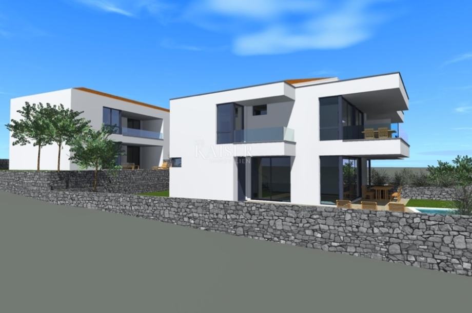 Kaiser immobilien posreduje u prodaji dvojne kuće u novogradnji 600m od mora, Malinska otok Krk.