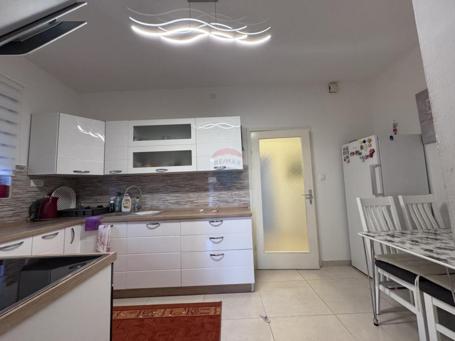 Okućnica je prostrana i funkcionalno uređena, s natkrivenim grill prostorom i više parkirnih mjesta.