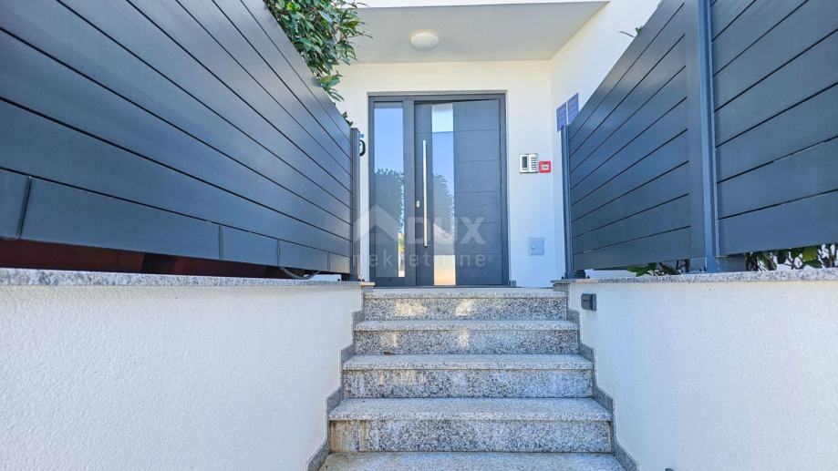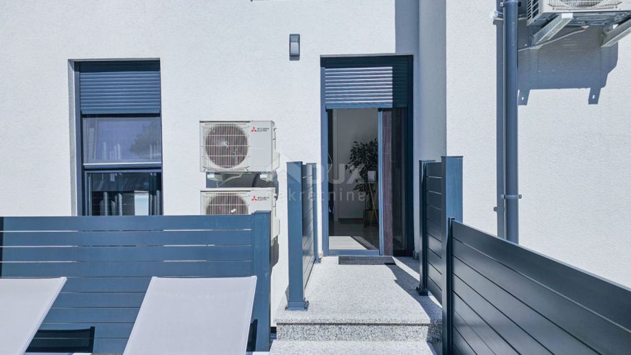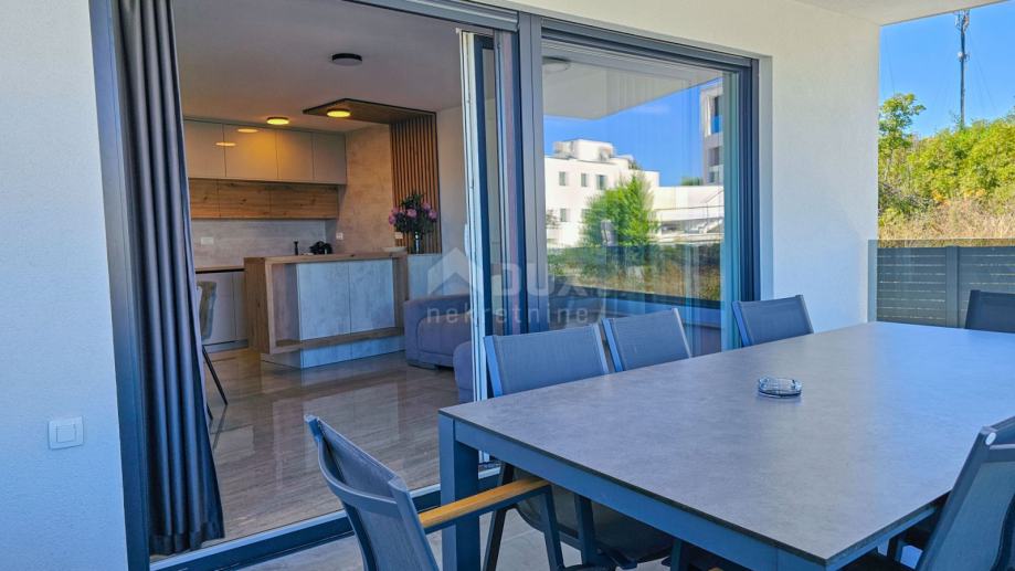Ono što ovu nekretninu čini izuzetno privlačnom je privatna okućnica površine 67 m², koja uključuje bazen od 12 m², sunčalište i vanjski tuš.