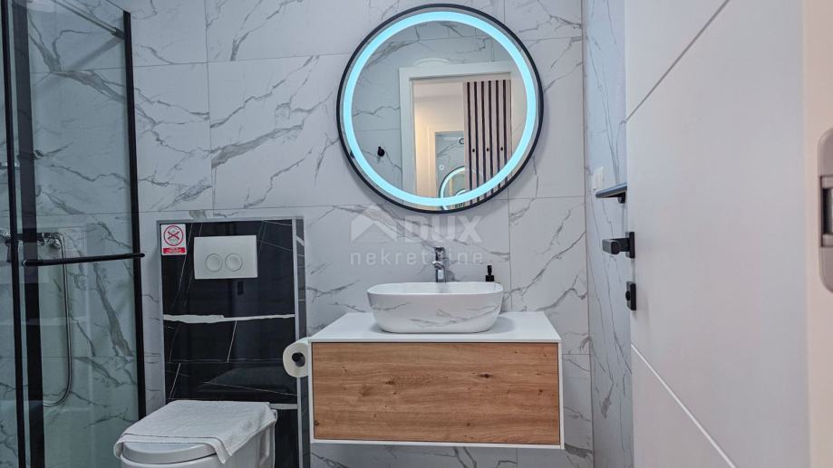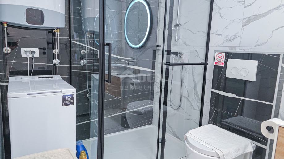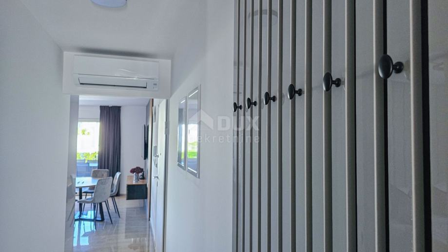 Uz apartman dolazi i parkirno mjesto u vlasništvu, a udaljenost od mora iznosi samo 250 metara. Potpuno opremljen i namješten, apartman je spreman za useljenje i idealna je prilika za one koji traže luksuzan dom na jednoj od najpoželjnijih destinacija na Jadranu.