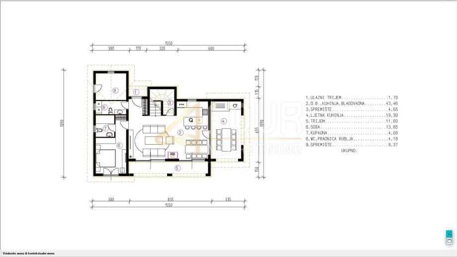 Dodatno, tu su spavaća soba s kupaonicom, wc, spremište i prostorija za pranje rublja.