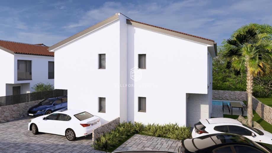 Na katu su smještene tri spavaće sobe svaka sa svojom kupaonicom,hodnikom i balkonom. Stambena jedinica ima dva parkirna mjesta.