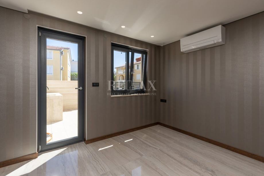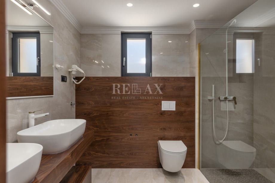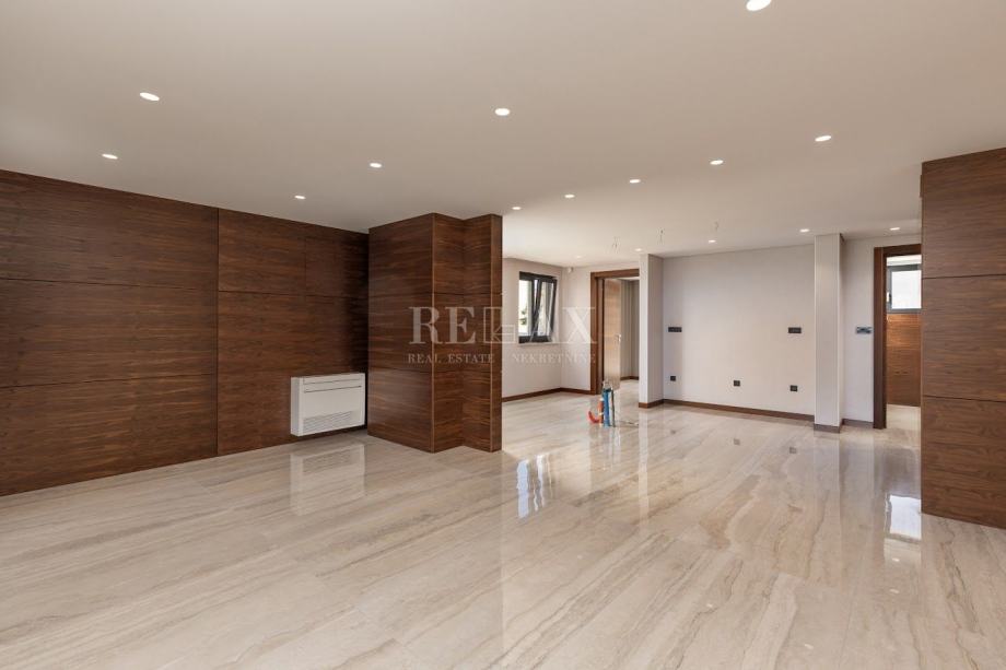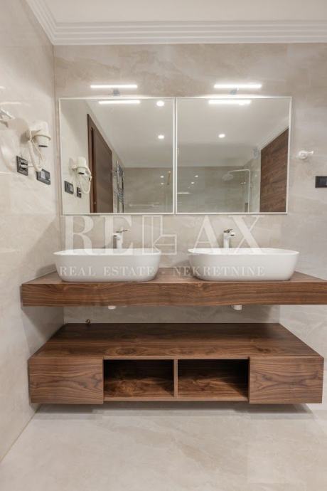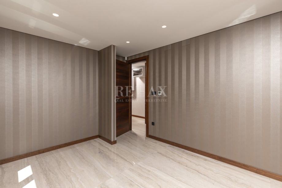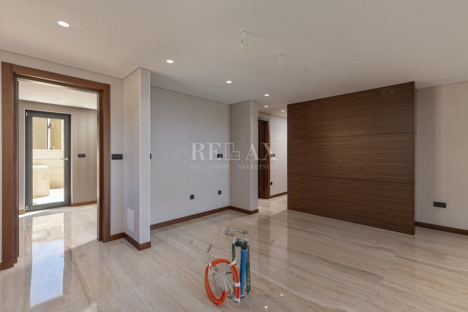 Prostrani luksuzni apartman sastoji se od tri prostrane spavaće sobe u kojima će sobna vrata biti od orah drveta, talijanskog proizvođača Diere, dvije kupaonice i toalet bit će uređene kombinacijom drveta i keramike. Apartman ima otvoreni plan dnevnog boravka sa kuhinjom i blagovaonicom koji ima izlaz na komfornu terasu od 25 m2.