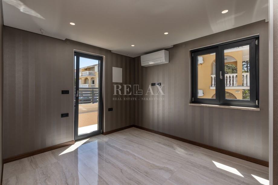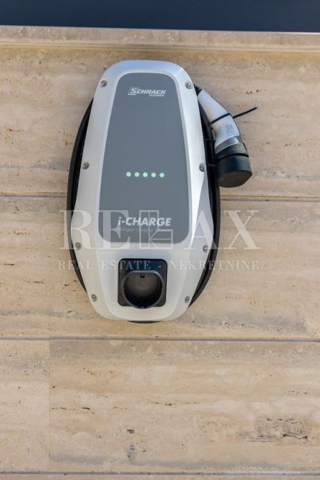Fasada objekta je od ventilirajućeg rimskog kamena Travertin, dok su ulazna vrata u stambeni objekt od poznatog proizvođača Inoterm.