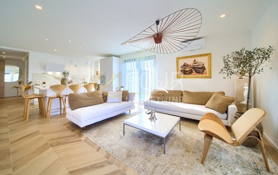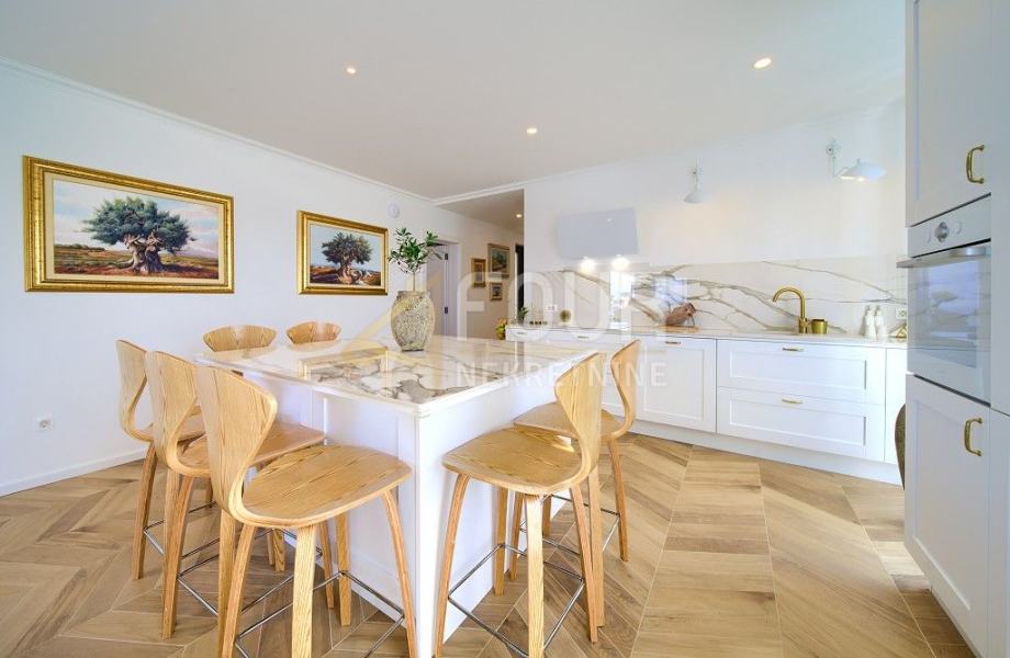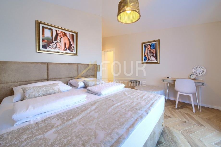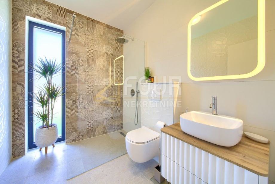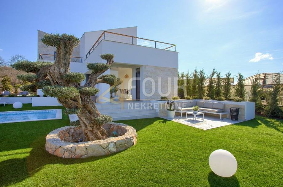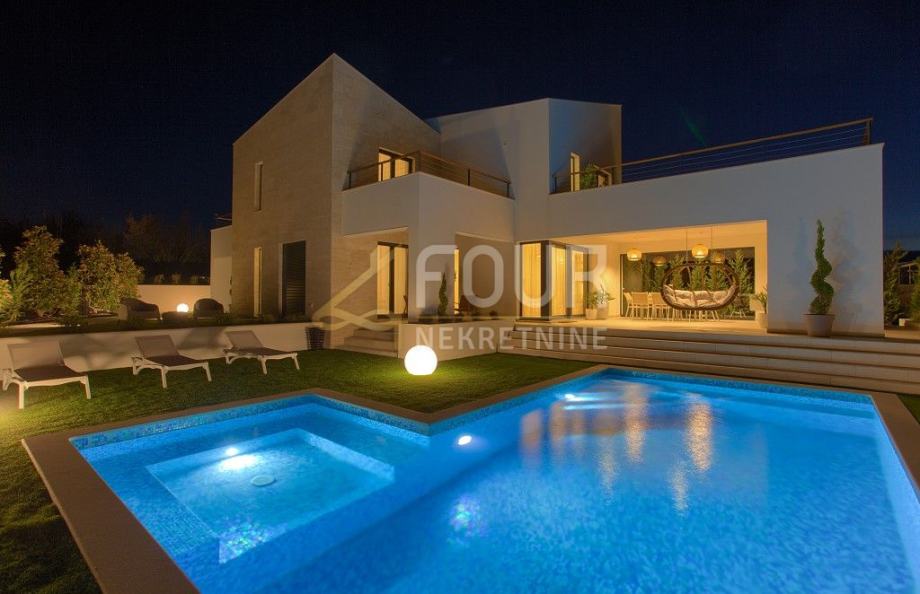 Suteren nudi vrhunski sadržaj s teretanom, dječjom igraonicom, spa zonom s finskom saunom te vinotekom, kao i veliku garažu. Prizemlje se sastoji od moderne kuhinje s blagovaonicom i prostranim dnevnim boravkom otvorenog koncepta, te jedne spavaće sobe s privatnom kupaonicom i terasom. Iz dnevnog boravka izlazi se na prostranu vanjsku terasu i uređenu okućnicu, gdje se nalaze bazen, sunčalište s vanjskim tušem i toaletom te grill zona. Unutarnje stubište vodi na kat, gdje su smještene tri elegantne spavaće sobe, svaka s vlastitom kupaonicom i terasom.
