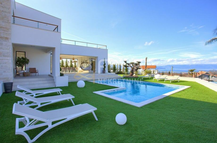 Otok Krk, Malinska - okolica, novogradnja, vila s bazenom, panoramski (prodaja)