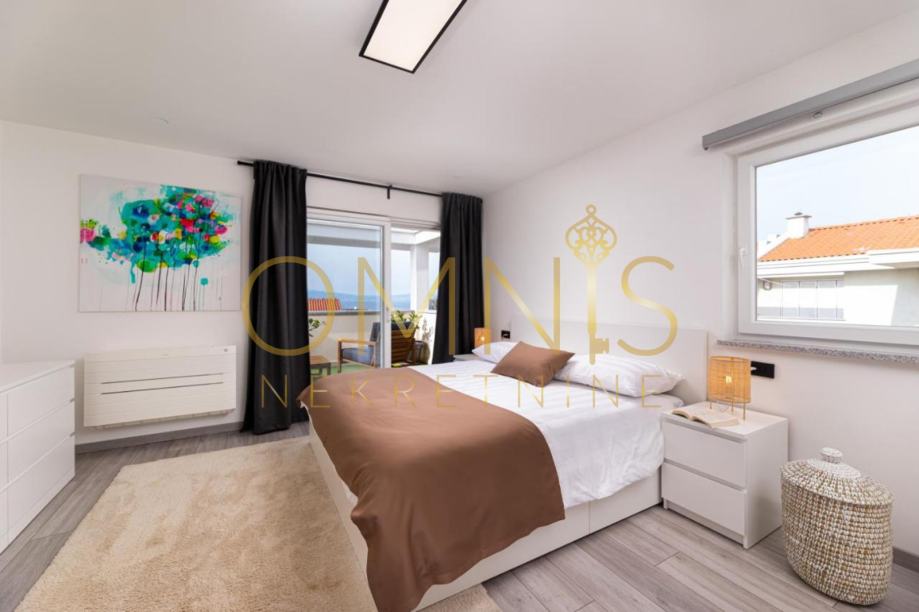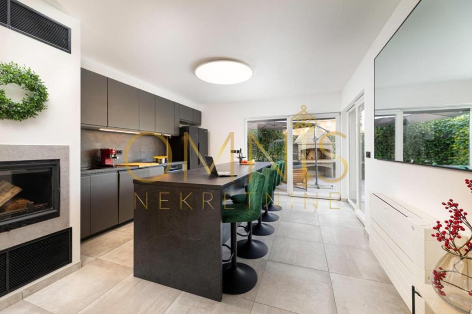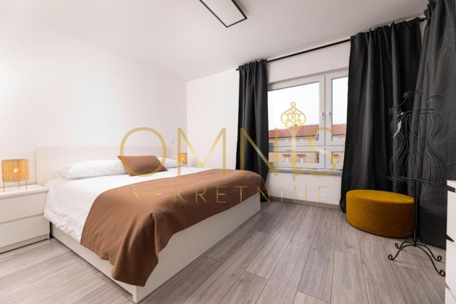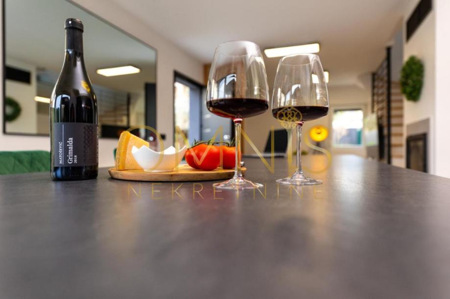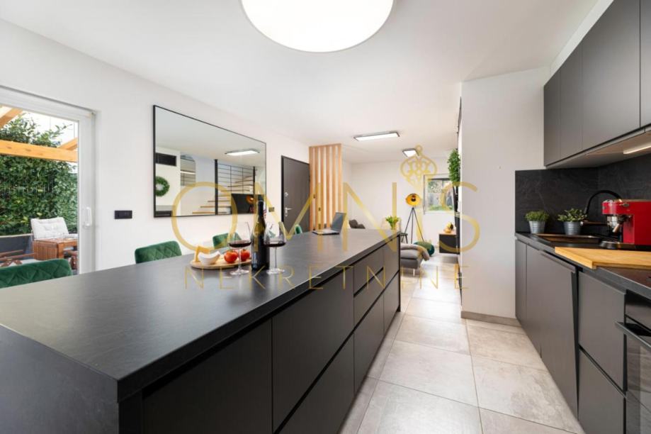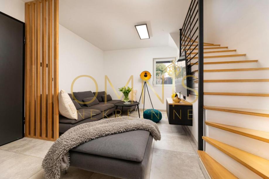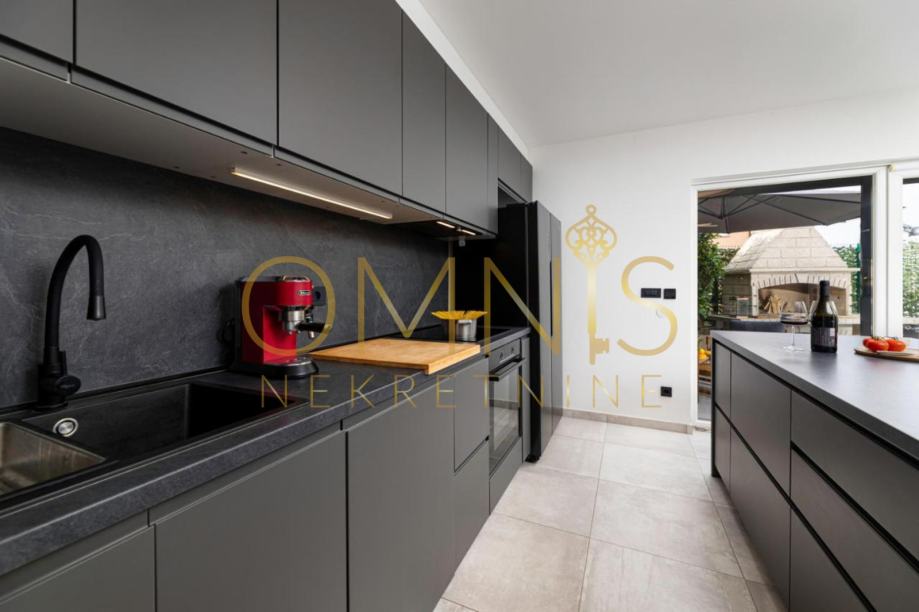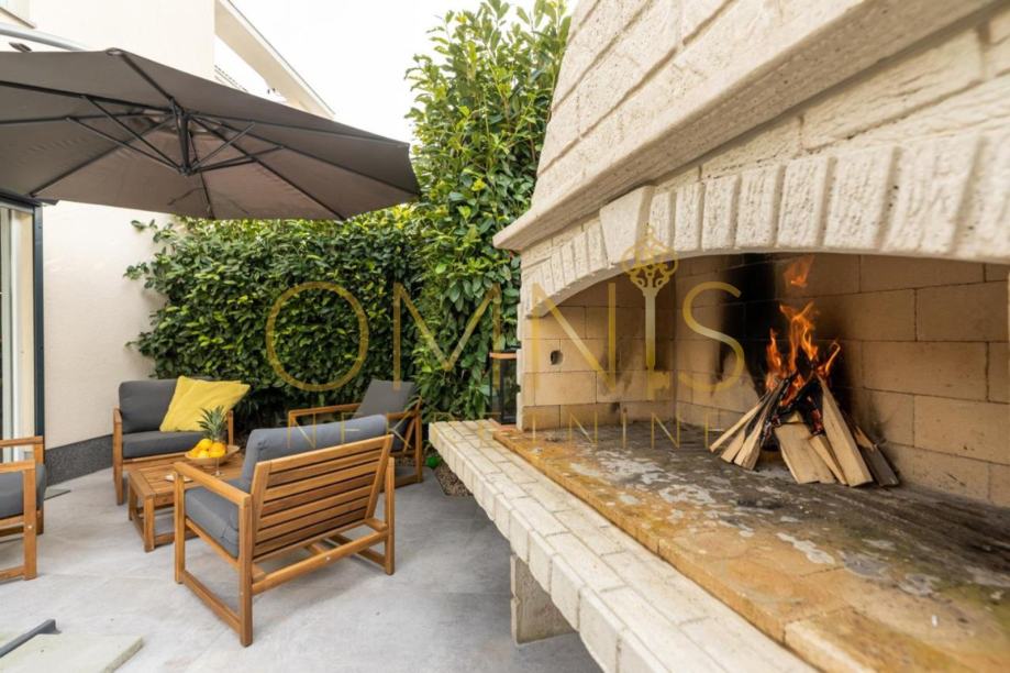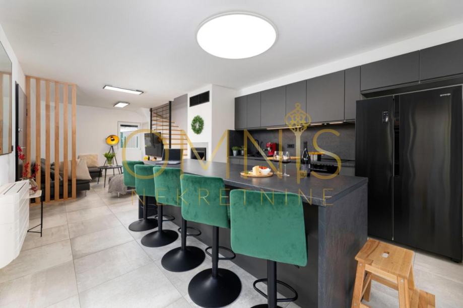 Prodajemo prekrasnu dvojnu kuću koja je konicipirana kao troetažni stan. U prizemlju se nalaze ulazni hodnik, dnevni boravak s kuhinjom i blagavaonicom open space koncepta,ostave, terasa sa izlaskom na okućnicu te kupaonica sa sanitarnim čvorom. Na prvom katu koje je povezano unutarnjim stepeništem se nalazi spavaća soba,garderoba, balkon te kupaonica s sanitarnim čvorom. Na drugome katu koje je također povezano unutarnjim stepeništem se nalazi druga spavaća soba.Grijanje i hlađenje je na klima inverter uređaje( svaka prostorija), kruta koriva( kamin u dnevnom boravku te podno na struju( dnevni boravak, kupaonice, kuhinja) Nekretnina je kompletno namještena te se kao takva i prodaje. Ujedno je i posloženi uhodani posao pošto se nekretnina iznajmljuje tako da budući vlasnik može preuzeti po želji. Okućnica je ukrašena mediteranskim biljem te svakako poseban ugođaj daje kamin i popločena terasa u toplim ljetnim danima. Nekretnini također pripadaju i dva parkirna mjesta u vlasništvu. Odlična nekretnina nedaleko od mora i ostalih bitnih sadržaja.