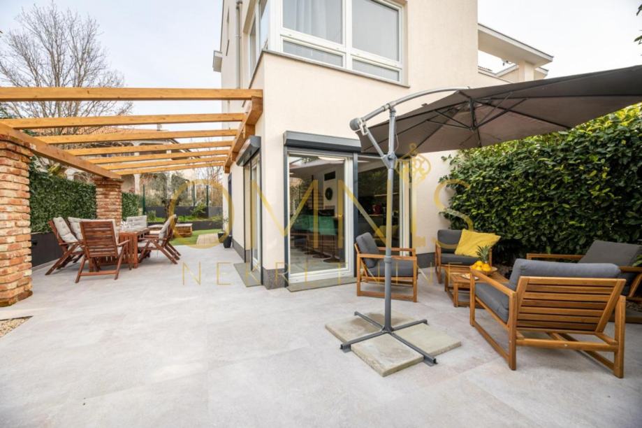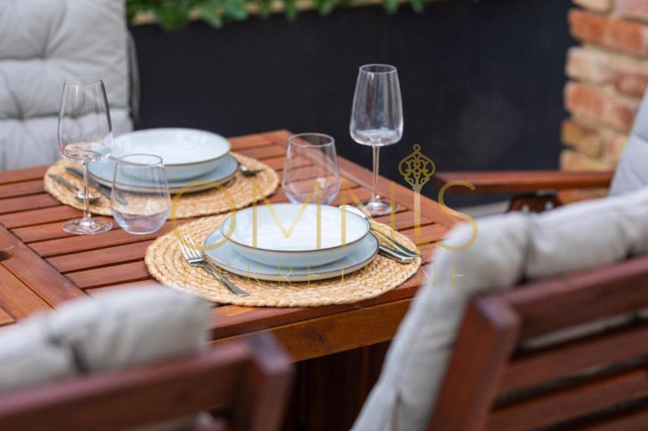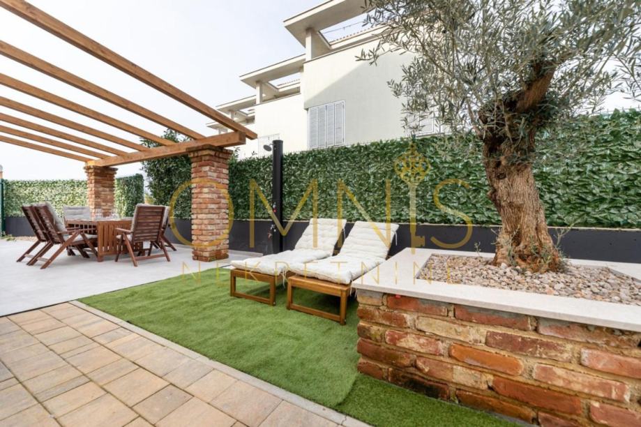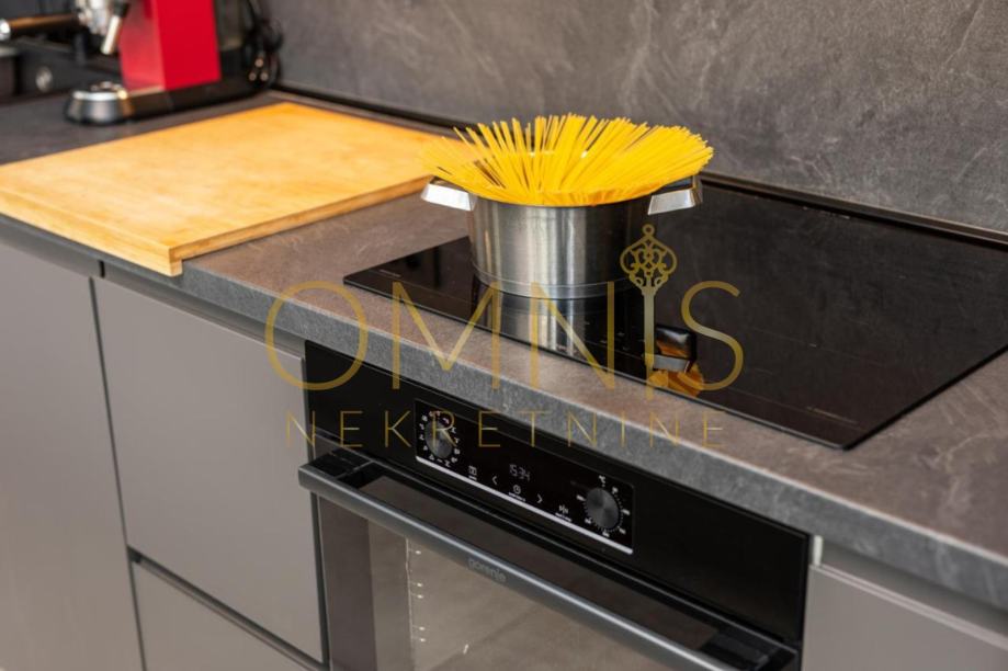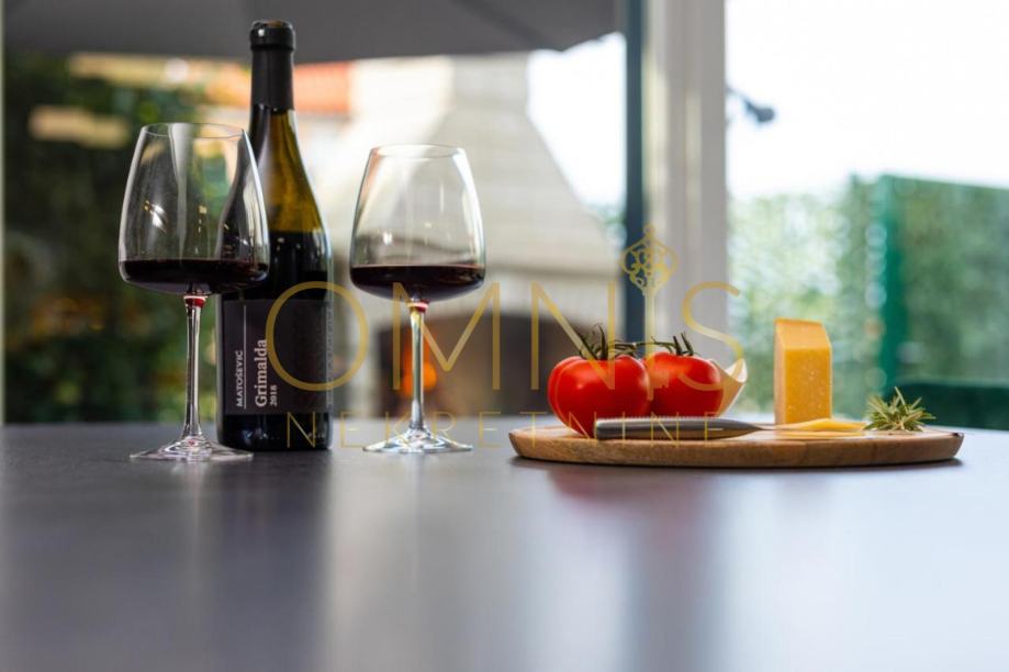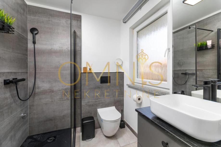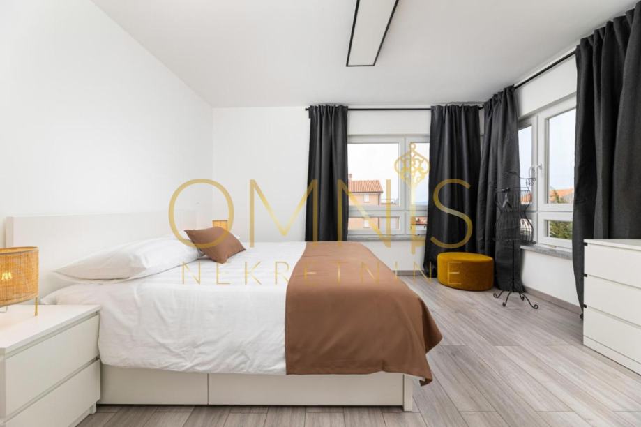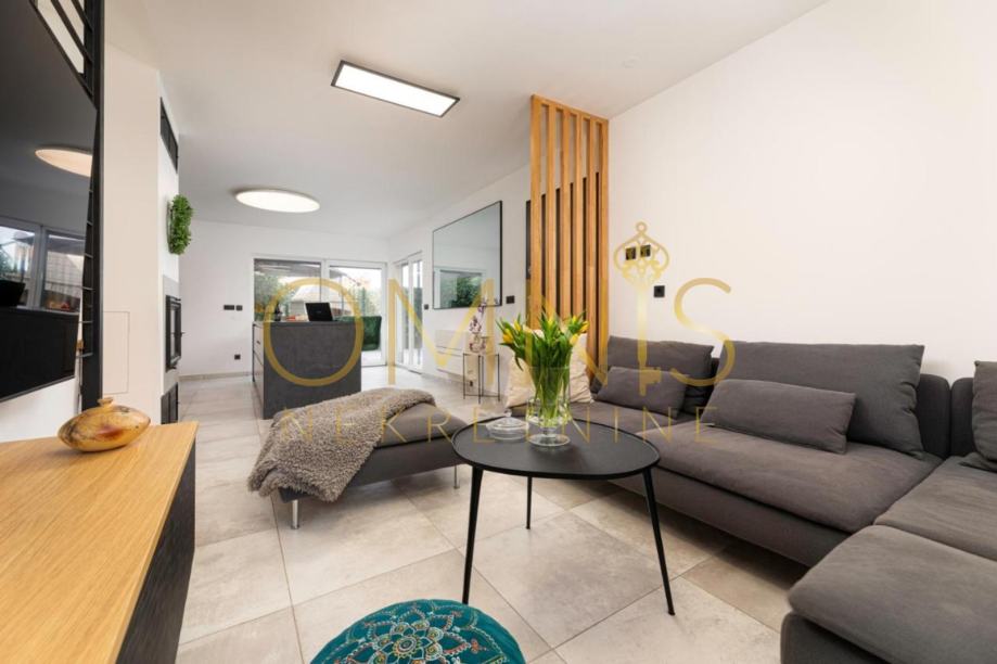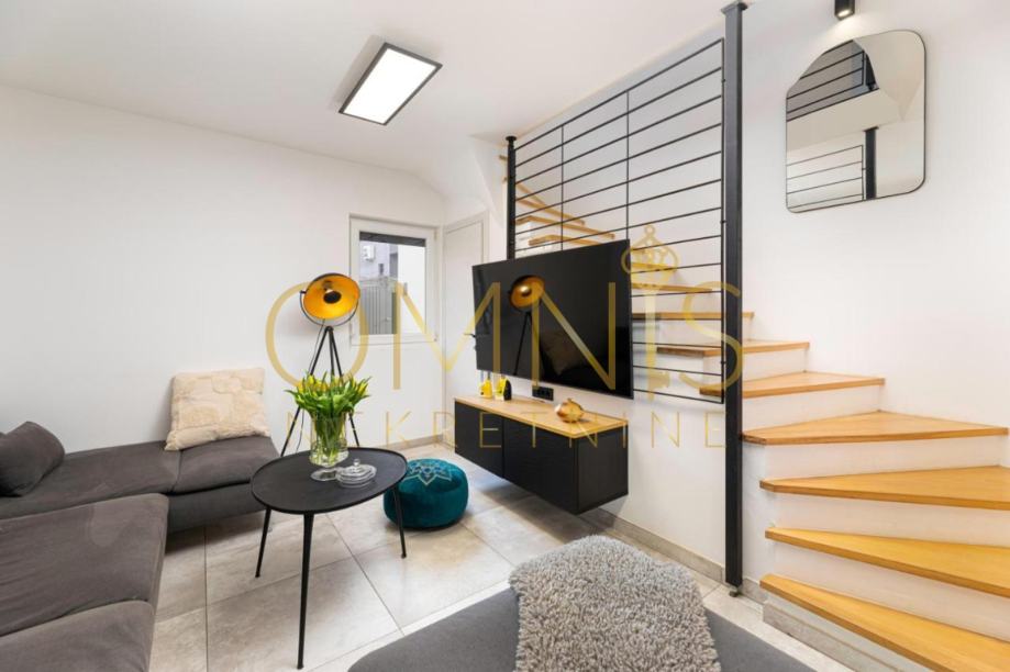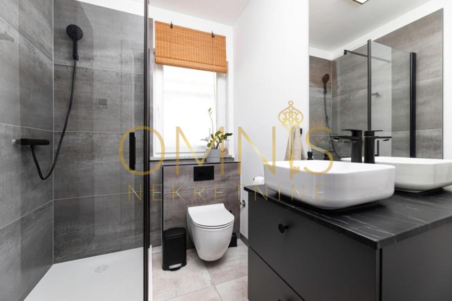 Prodajemo prekrasnu dvojnu kuću koja je konicipirana kao troetažni stan. U prizemlju se nalaze ulazni hodnik, dnevni boravak s kuhinjom i blagavaonicom open space koncepta,ostave, terasa sa izlaskom na okućnicu te kupaonica sa sanitarnim čvorom. Na prvom katu koje je povezano unutarnjim stepeništem se nalazi spavaća soba,garderoba, balkon te kupaonica s sanitarnim čvorom. Na drugome katu koje je također povezano unutarnjim stepeništem se nalazi druga spavaća soba.Grijanje i hlađenje je na klima inverter uređaje( svaka prostorija), kruta koriva( kamin u dnevnom boravku te podno na struju( dnevni boravak, kupaonice, kuhinja) Nekretnina je kompletno namještena te se kao takva i prodaje. Ujedno je i posloženi uhodani posao pošto se nekretnina iznajmljuje tako da budući vlasnik može preuzeti po želji. Okućnica je ukrašena mediteranskim biljem te svakako poseban ugođaj daje kamin i popločena terasa u toplim ljetnim danima. Nekretnini također pripadaju i dva parkirna mjesta u vlasništvu. Odlična nekretnina nedaleko od mora i ostalih bitnih sadržaja.