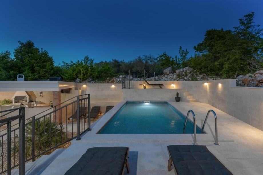 U mirnom okruženju nedaleko od Malinske, na svega 2 km od mora i centra mjesta, smjestila se ova šarmantna kamena kuća s grijanim bazenom i bogato uređenom okućnicom. Samostojeća i potpuno ograđena, nudi potpunu privatnost, opušteni mediteranski ambijent i idealne uvjete za odmor ili turistički najam.