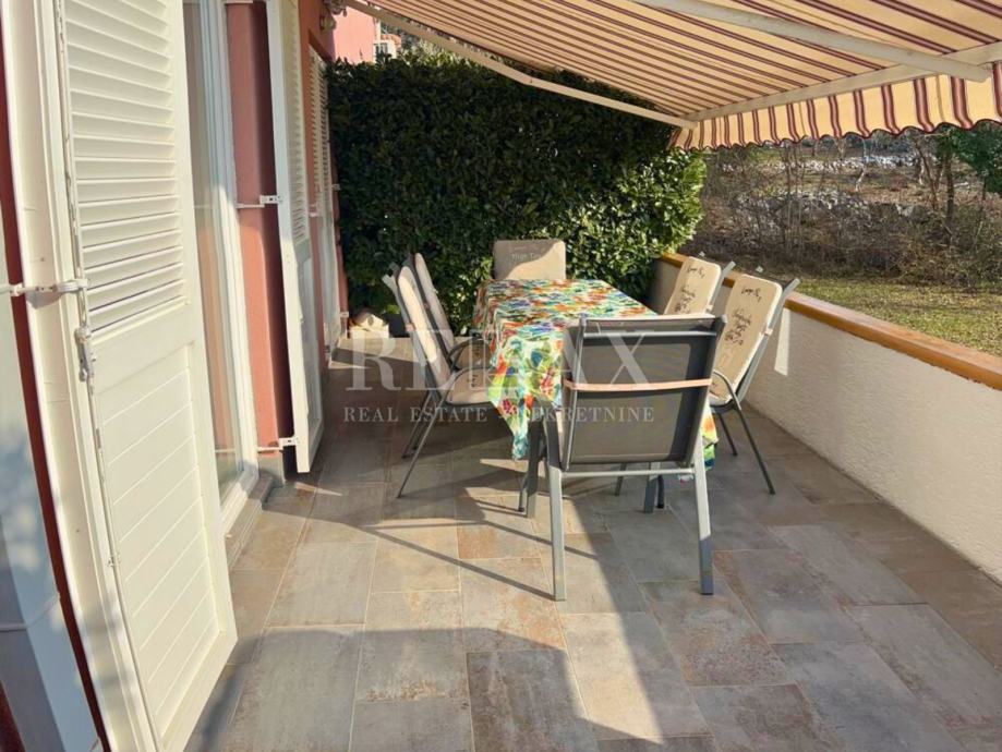 Udaljenost od mora iznosi 1,1 km pješice, dok je centar Malinske dostupan za samo 1 km hoda. Nekretnina dolazi s dva parkirna mjesta, što je velika prednost tijekom turističke sezone. Iako stan nema direktan pogled na more, okružen je zelenilom koje pruža dodatni osjećaj privatnosti i mira.