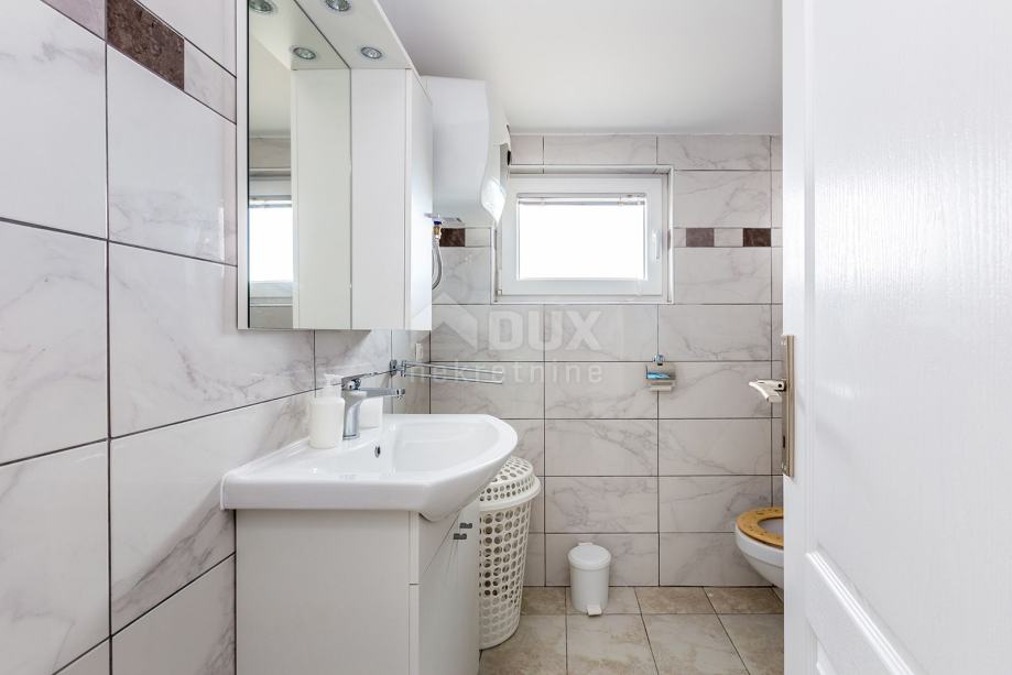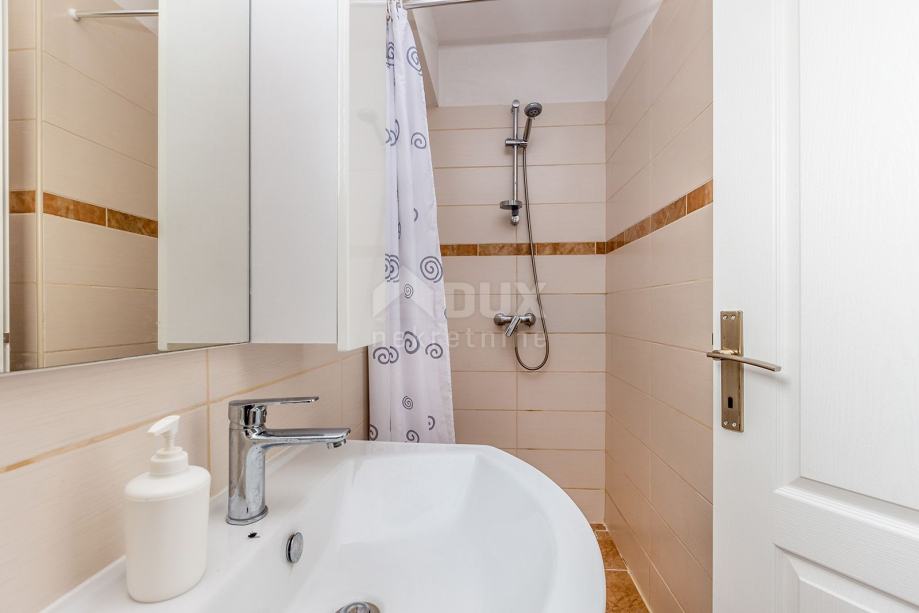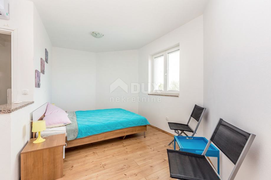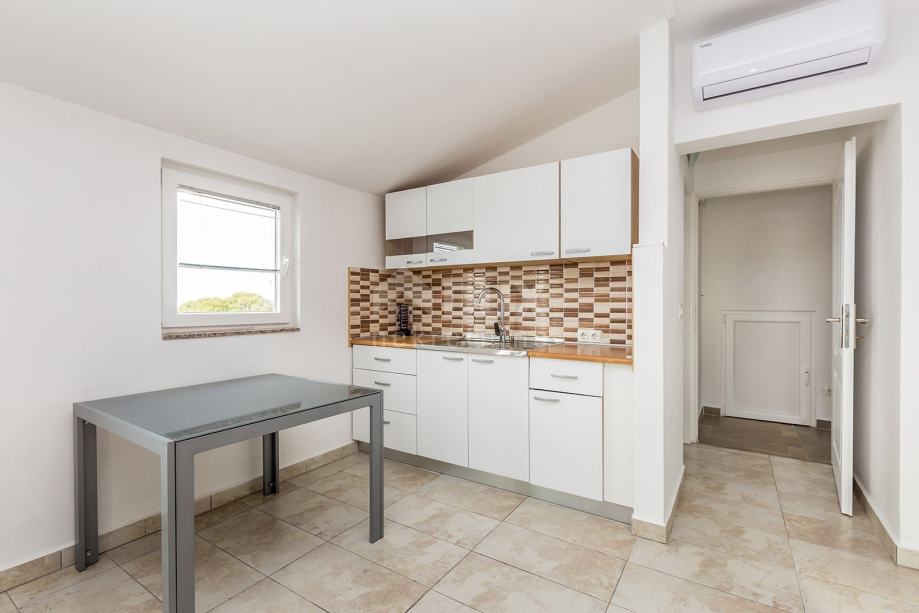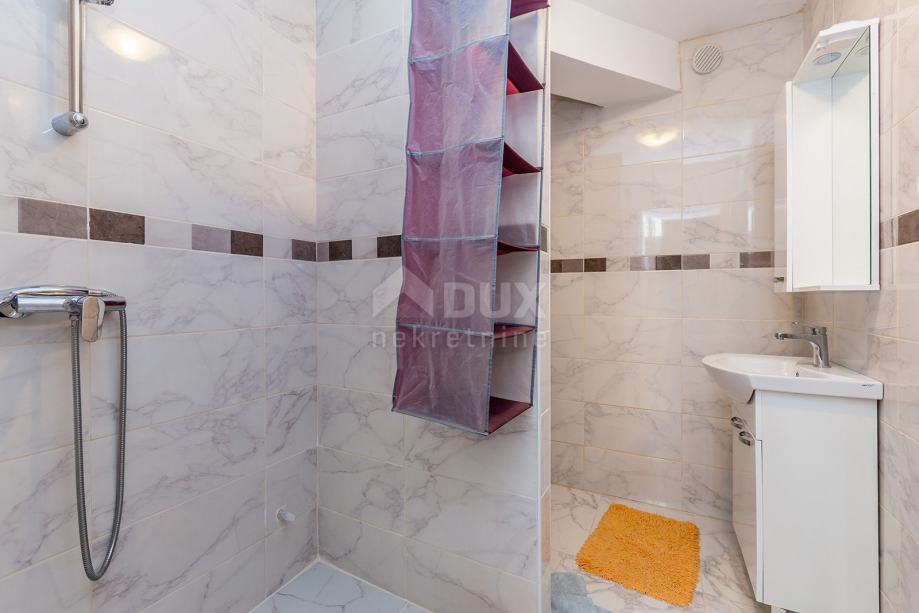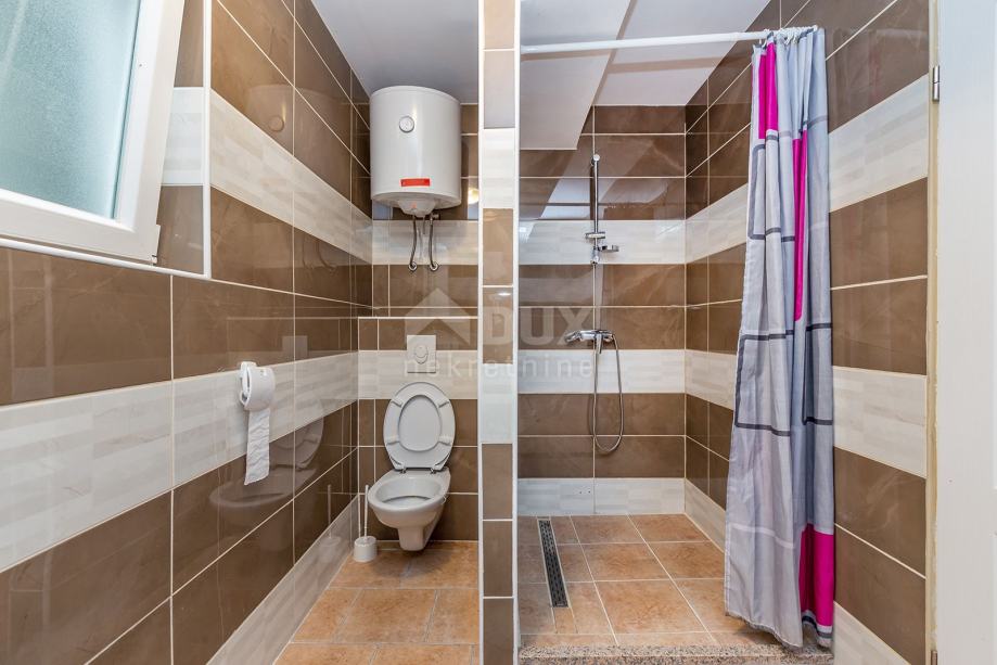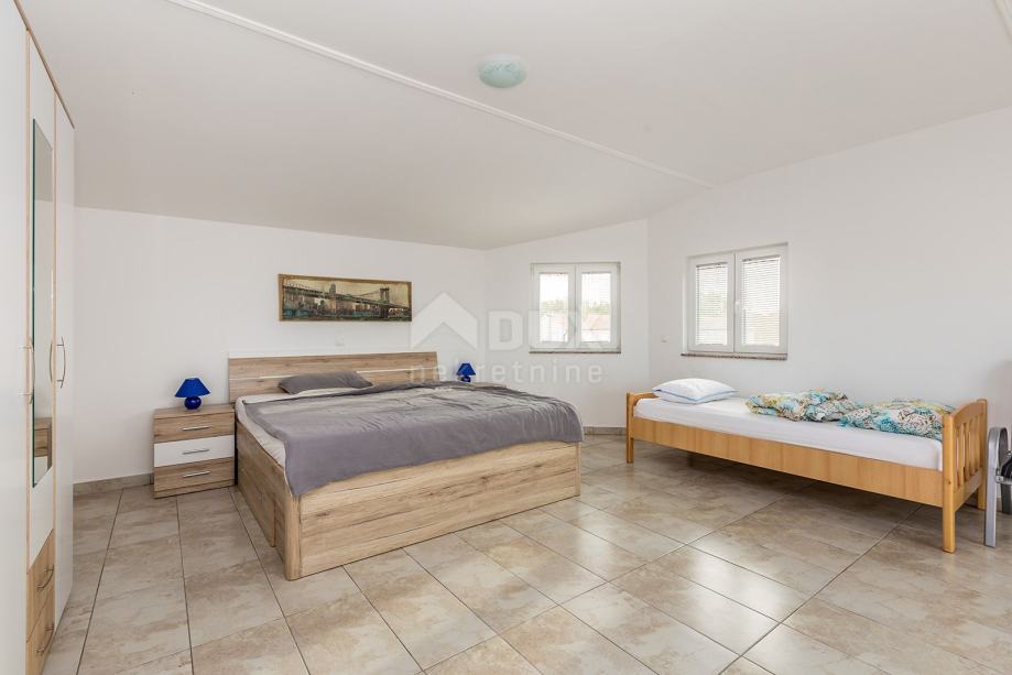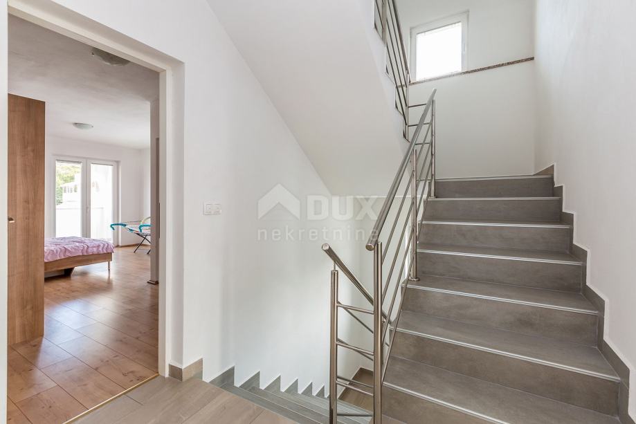 Kuća veličine 456 m2 sastoji se od suterena, prizemlja i dva kata. U suterenu se nalazi soba s vlastitom kupaonicom, vešeraj, kotlovnica, fitness dvorana i multifunkcionalni prostor koj se može preurediti u npr. još jednu sobu ili ured. U prizemlju se nalazi prostrani dnevni boravak, s kuhinjom i blagavaonom, odakle je izlaz na terasu prema bazenu, kupaonica, te još jedna velika soba s vlastitiom kupaonicom. Na prvom katu se nalaze tri odvojene spavaće sobe s vlastitim kupaonama, dok je u potkrovlju smješten jedan studio apartman s prostranom terasom i panoramskim pogledom na more. Cijela kuća dizajnirana je tako da se po potrebi mogu sobe i katovi pregrađivat ili spajati. Kuća se prodaje kao cjelina, ali je moguće i kupiti posebno svaku etažu ili apartman.