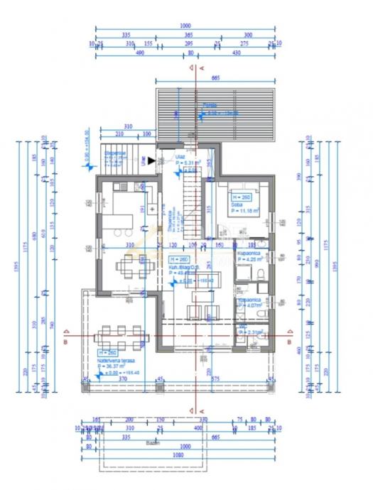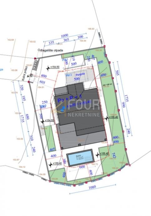 Projekt predviđa izgradnju kuće (S+P+1) s ukupnom površinom tlocrta 1080 x 1395.