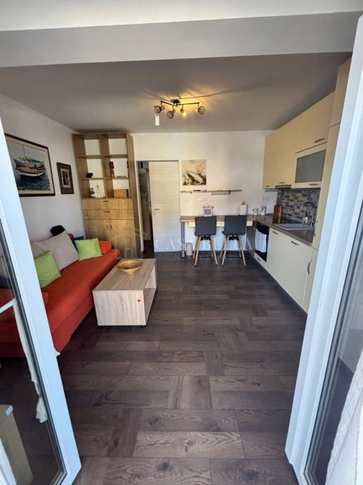 Stan površine 53 m² sastoji se od spavaće sobe, kupaonice, dnevnog boravka s kuhinjom te dvije terase koje pružaju dodatnu udobnost i boravak na otvorenom. Kompletno je namješten i u potpunosti renoviran 2019. godine. Opremljen je klimom, a za grijanje su postavljene mramorne ploče.