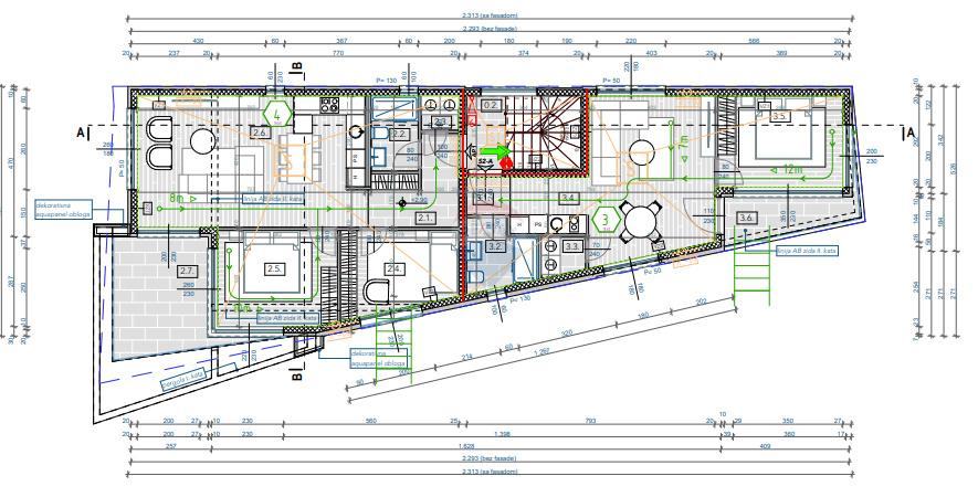 - **Drugi kat**: Prostrani apartman površine 110 m² s krovnom terasom od 60 m² i dva parkirna mjesta.