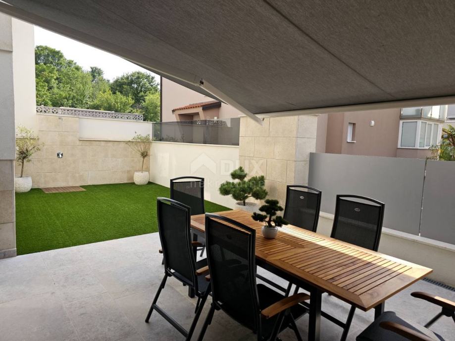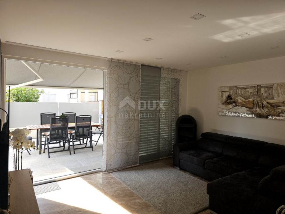 S ukupnom površinom od 72m², prostor se sastoji od dvije prostrane spavaće sobe, dnevnog boravka, kuhinje s blagovaonicom, kupaonice, hodnika te praktične ostave. No, pravi dragulj ovog apartmana je predivna terasa s pripadajućom okućnicom, prostorom od čak 55m2, pružajući savršeno okruženje za opuštanje ili druženje s obitelji i prijateljima.