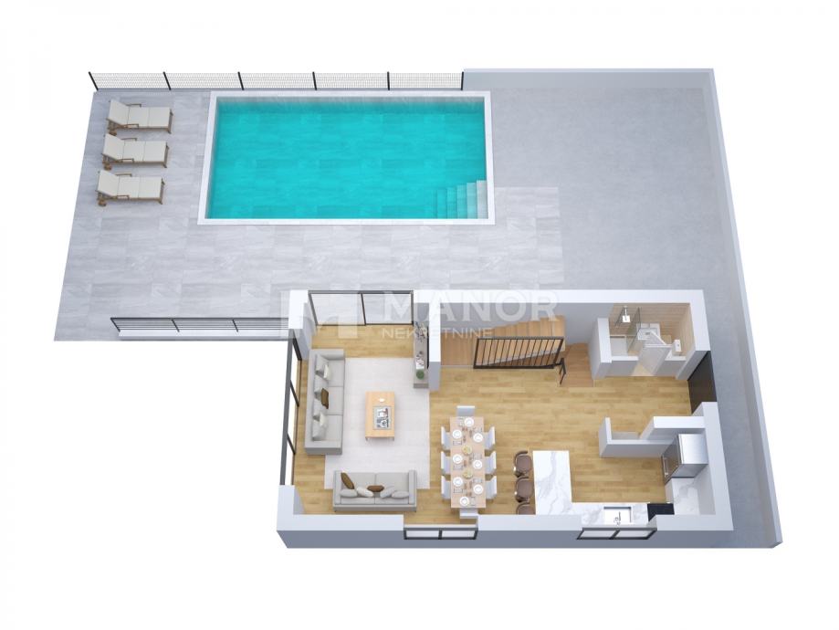 Manor predstavlja prekrasnu novogradnju - dvojnu kuću smještenu u mjestu Brzac na otoku Krku, površine 135 m2.