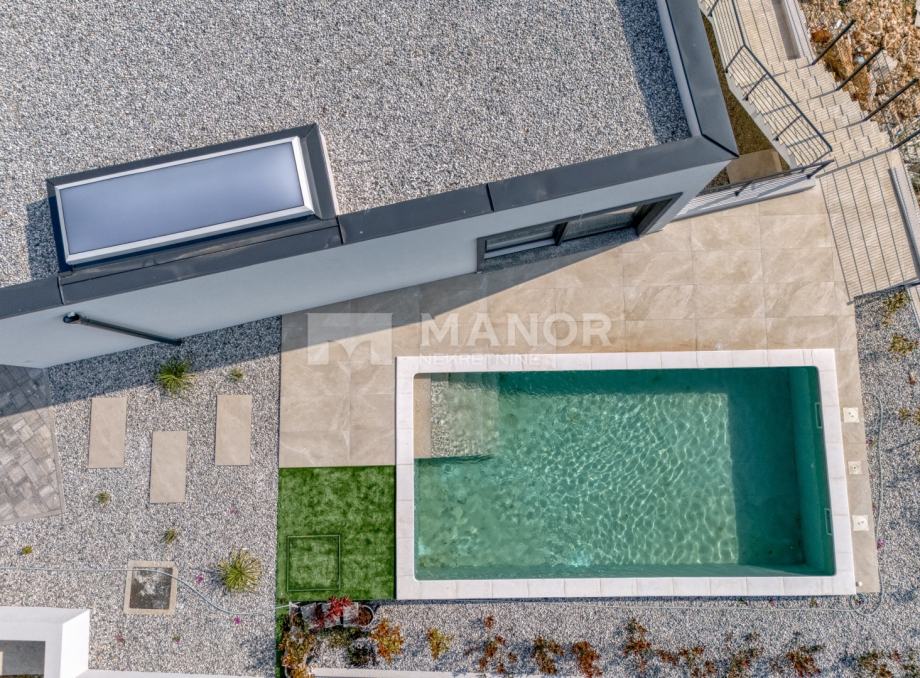 okućnicu u sklopu koje se nalazi bazen, sunčalište i vrt. S krovne terase se pruža fantastičan pogled na more, a idealna