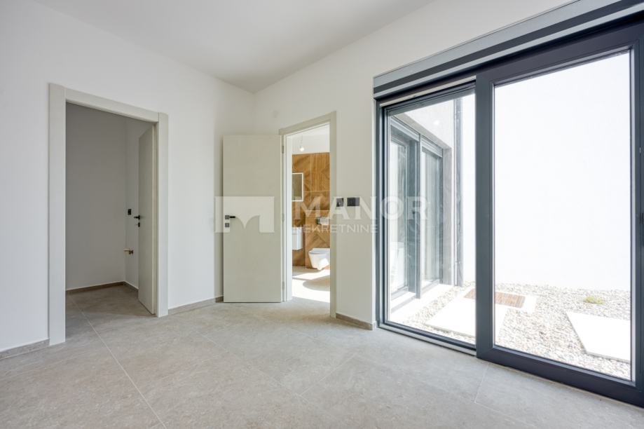 sobe, kupaonica, spremište, master spavaća soba s garderobom i kupaonicom. Iz svake sobe se izlazi na pripadajuću