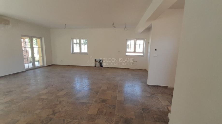 Ukupna stambena površina prve kuće je 250 m2 i sastoji se od prizemlja i kata. U prizemlju se nalaze ulaz, dnevni boravak, kuhinja, blagavaonica, prostorija za zabavu, WC te stepenište koje vodi na kat gdje se nalazi 4 spavaćih soba i 3 kupaonice. Na okućnici je predviđen bazen od 50 m2, sunčalište i prostor za grill te parkirna mjesta.