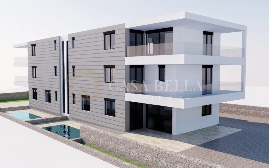 CASA BELLA iz ponude izdvaja fantastičan 2S+DB stan površine 87 m2 smješten u novogradnji u Krku. Smjestio se u prizemlju zgrade te se sastoji od hodnika, kuhinje s blagovaonicom i dnevnim boravkom, dvije spavaće sobe i dvije kupaonice, a također ima i pripadajuću okućnicu s vlastitim bazenom. Stanu također pripadaju i dva vanjska parkirna mjesta te spremište te če u stanu biti postavljeno podno grijanje, ALU stolarija s troslojnim staklom te podno grijanje. Vrhunska nekretnina u blizini svih važnih sadržaja. Neposredna blizina centra Krka, plaže i mora. Predviđen zavržetak radova za 12./23.