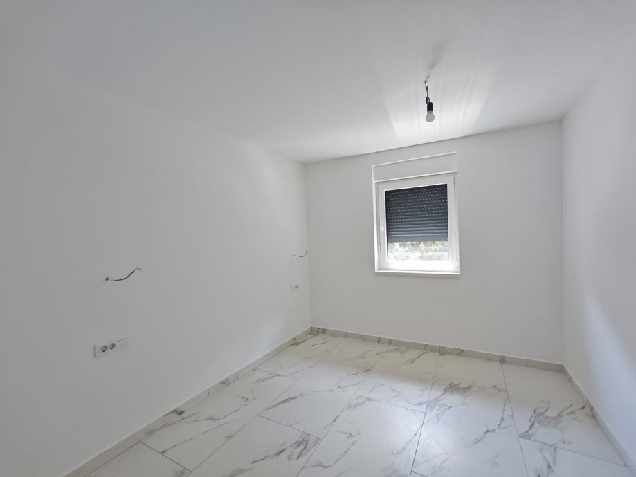 U opremanju apartmana korišteni su provjereni i kvalitetni materijali: PVC stolarija s komarnicima i roletnama, moderna talijanska keramika i sanitarije. Apartman je klimatiziran, a budući vlasnik ima mogućnost ugradnje peći zahvaljujući postojećem dimnjaku.