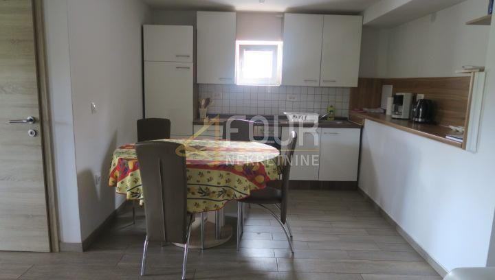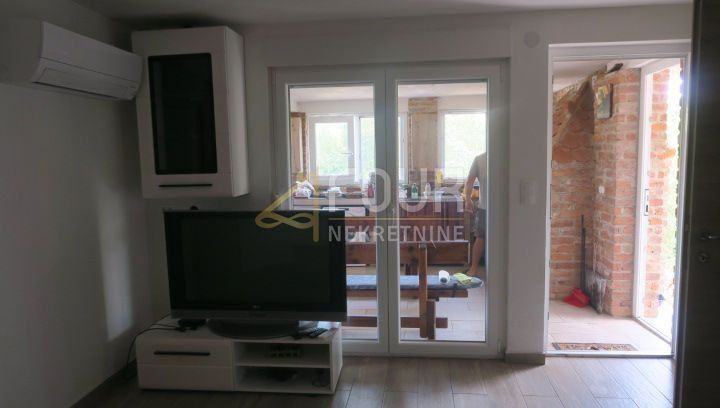 U prizemlju je 2-sobni stan s dnevnim boravkom koji ima izlaz na natkrivenu terasu s roštiljem i ljetnom kuhinjom.