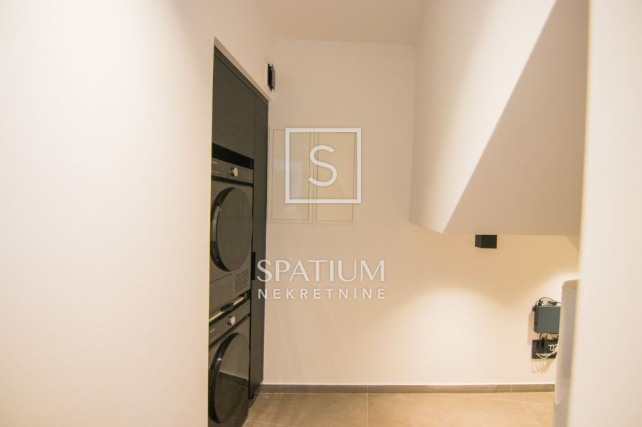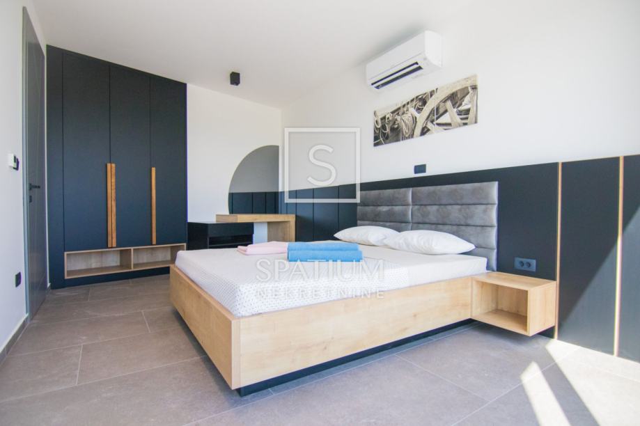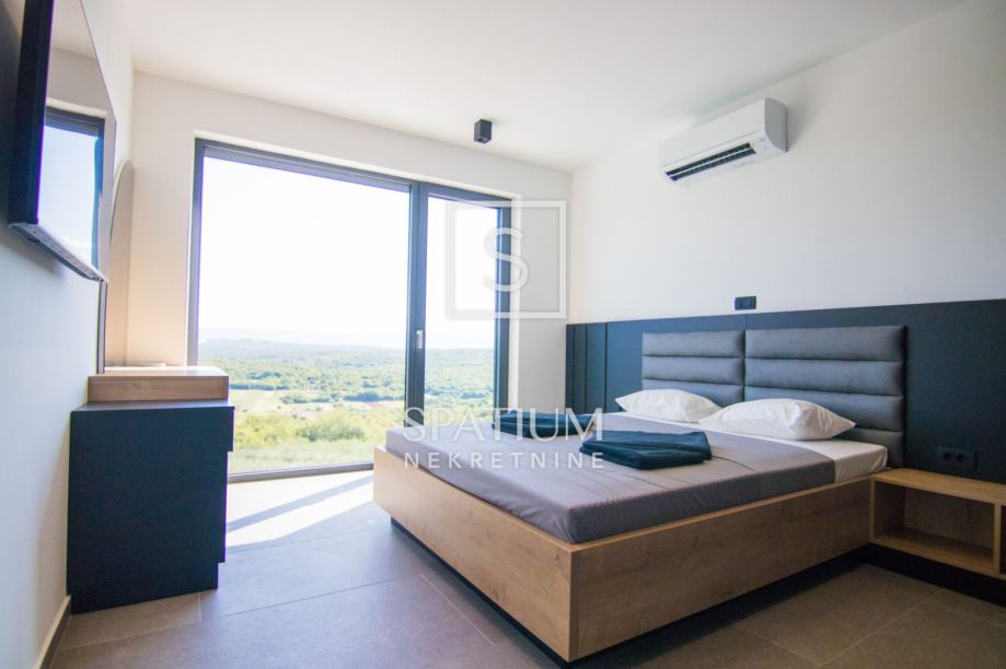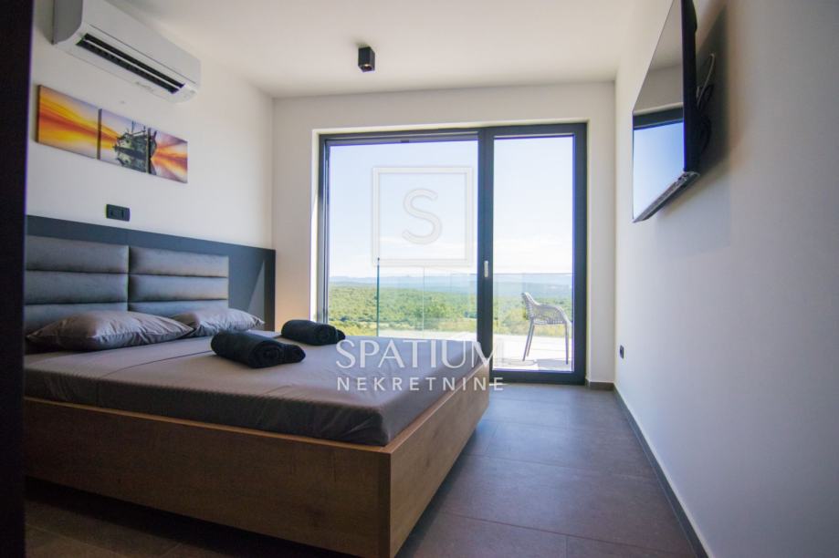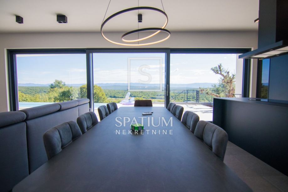 OTOK KRK, VRH, u ponudu smo dobili jedinstvenu nekretninu vrijednu pažnje. Ova luksuzna vila s bazenom ukupne stambene površine od 190 m2 te prostranom okućnicom od 730 m2 nalazi se u mirnom dijelu otoka Krka, a sastoji se od prizemlja i kata. U prizemlju vile predviđena je garaža, prostrani dnevni boravak s kuhinjom i blagovaonicom, spremište s perilicom za rublje i sušilicom, WC, prostor za vježbanje i wellness. Dvorište kuće sastojat će se od natkrivene terase, sunčališta, preljevnog bazena i roštilja. Na katu vile nalazit će se četiri spavaće sobe, četiri kupaonice i hodnik/stepenište. Tri spavaće sobe imat će izlaz na zajednički balkon s kojeg će se pružati prekrasan pogled na maslinike, planine i more u daljini.