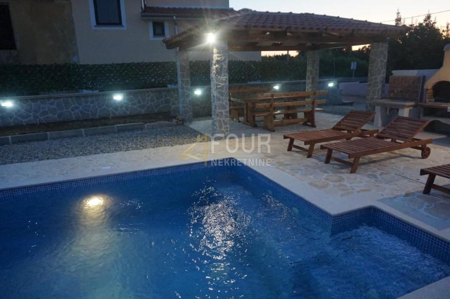 U ponudi je kompletno adaptirana kamena kuća s dva stana i uređenom okućnicom s bazenom.