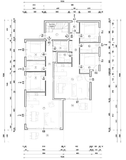 U mirnom i atraktivnom okruženju, smješten u vili s ukupno četiri ekskluzivne stambene jedinice, ovaj elegantan apartman u prizemlju površine 83,08 m². Apartman se sastoji od hodnika površine 12,48 m² stvara dojam prostranosti, dok se na lijevoj strani nalazi prva moderno uređena kupaonica od 4,41 m², opremljena tušem i vrhunskim sanitarijama. S desne strane hodnika smještena je prva spavaća soba, uređena u suvremenom stilu i površine 11,22 m², osmišljena kako bi pružila maksimalnu udobnost. Hodnik dalje vodi prema drugoj kupaonici površine 5,94 m², koja dodatno doprinosi luksuzu apartmana, dok se odmah pokraj nje nalazi druga spavaća soba iste površine od 11,22 m², također moderno uređena i ispunjena prirodnim svjetlom. Kraj prostranog hodnika čini prostrani open-space koncept dnevnog boravka, kuhinje i blagovaonice, koji se proteže na impresivnih 35,09 m², pružajući savršeno mjesto za obiteljska druženja i opuštanje. Velike staklene stijene omogućuju obilje svjetlosti te vode prema natkrivenoj terasi od 13,20 m², popločanoj visokokvalitetnim keramičkim pločama, s pogledom na vrt.