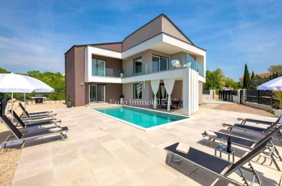 Otok Krk, okolica Vrbnika, moderna novogradnja s bazenom (prodaja)