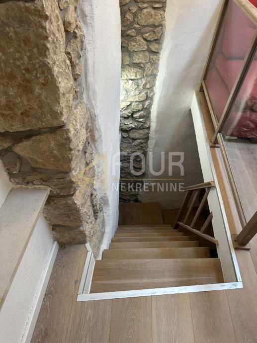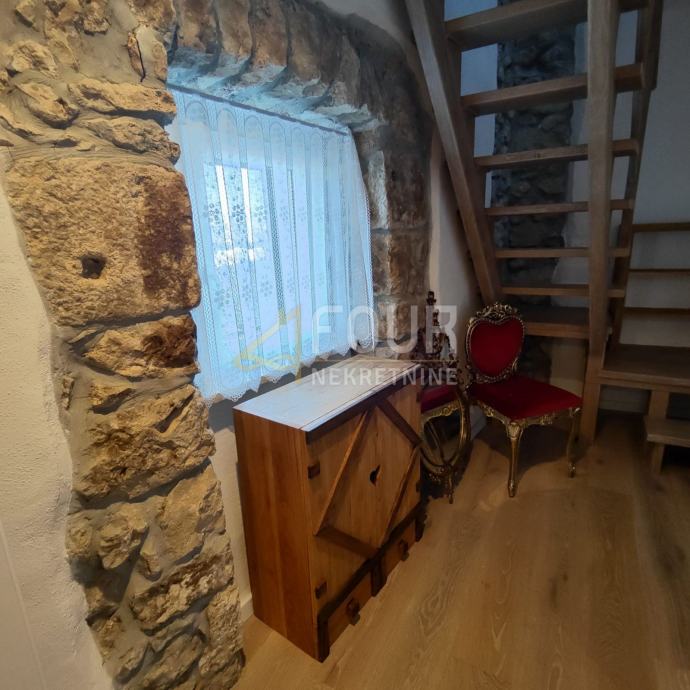 U ponudi je renovirana kamena kuća u nizu smještena u samom centru stare jezgre grada Omišlja, 200 metara zračne linije od mora.