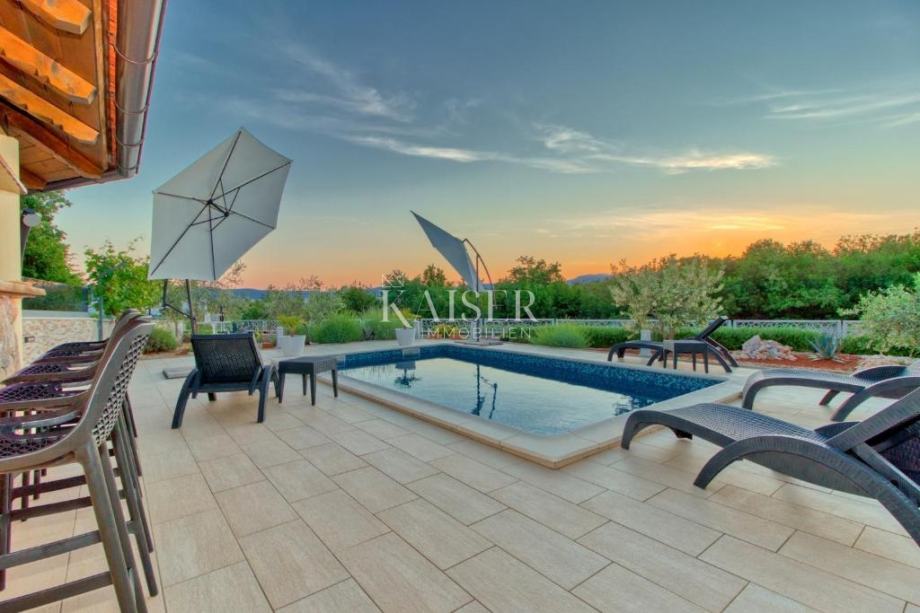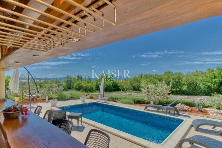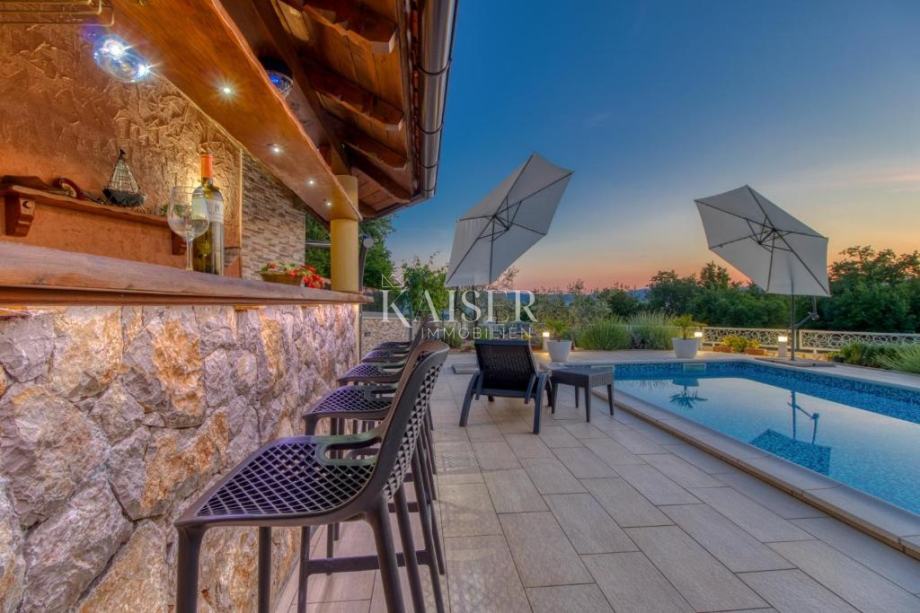 Otok Krk, Omišalj- ekskluzivna kuća 260m2 pogled na more, bazen i priv (prodaja)