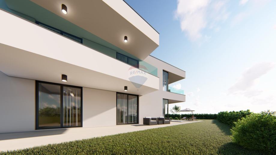 fasadi koji se spaja s kliznom staklenom stijenom na sjeveroistočnoj fasadi preko koje se pristupa na