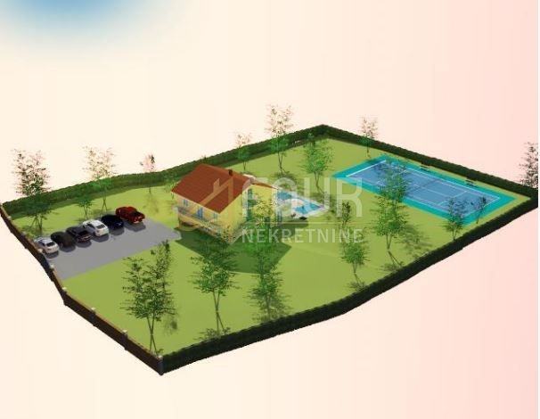 Kuća se nalazi na parceli od 3.242m2 na kojoj se nalazi bazen (10x4,18), vanjska kuhinja i teniski teren.