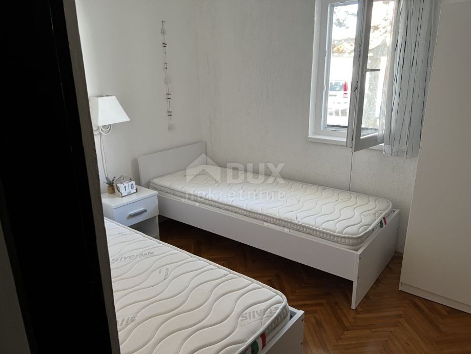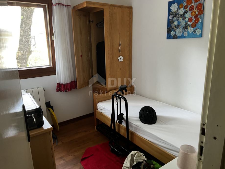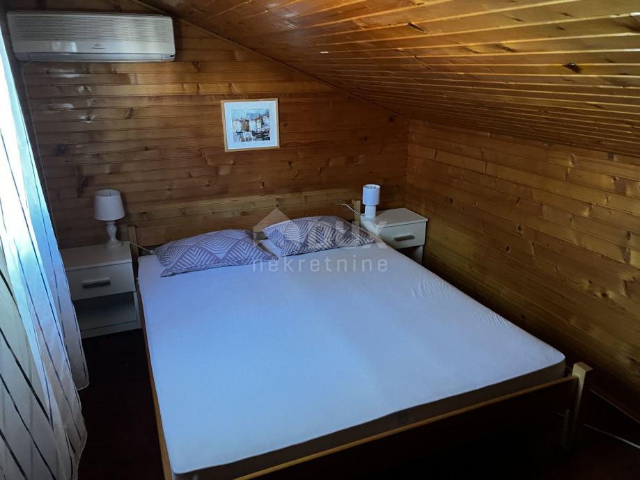 Prodaje se samostojeća obiteljska kuća sa velikim stanom i tri stana na mirnoj lokaciji u mjestu Porat. Stan je u zasebnoj zgradi i vrlo je prostran sa 100m2 stambene površine. Osim otvorene kuhinje i dnevnog boravka, stan ima tri spavaće sobe i kupaonicu. U hodniku unutarnje stepenište vodi u potkrovlje, gdje se nalazi i mjesto za spavanje. Centralno grijanje za kuću također se nalazi u potkrovlju i radi na struju. Stan od 50 m2 nalazi se s druge strane zgrade i ima poseban ulaz i privatnu terasu. Ima otvorenu kuhinju/dnevni dio, kupaonicu i dvije spavaće sobe. Na prvom katu su 2 apartmana, svaki sa 24,5 m2 stambene površine, oba sa otvorenim dnevnim dijelom i čajnom kuhinjom, kupaonicom i spavaćom sobom. Ovi apartmani također imaju terasu. Stan i 3 apartmana su opremljeni klima uređajem, SAT TV-om i internetom.
