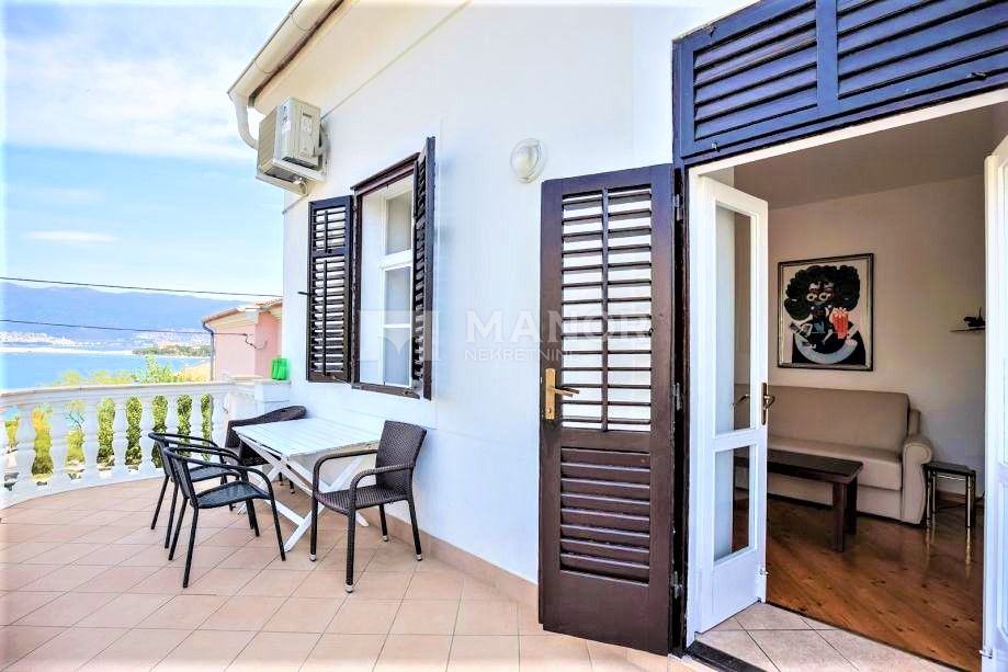 Na katu se nalazi hodnik, dnevni boravak i još jedna kuhinja iz kojih se izlazi na balkon s prekrasnim pogledom na more, soba i kupaonica.