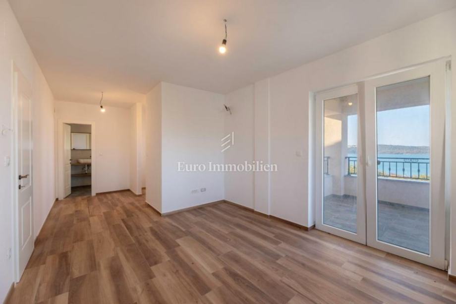 Druga etaža: tri spavaće sobe – glavna ima vlastitu kupaonicu, garderobu i balkon s pogledom na more, dok druge dvije dijele kupaonicu. Tu je i praonica koja se može prenamijeniti u sobu. Pristup potkrovlju moguć je sklopivim ljestvama.