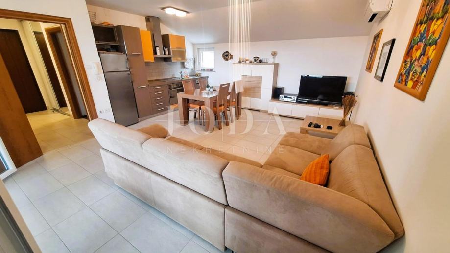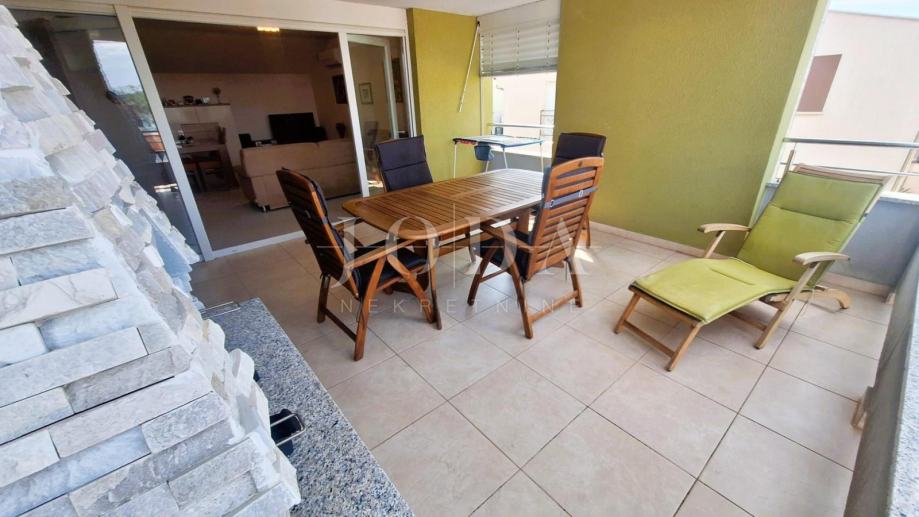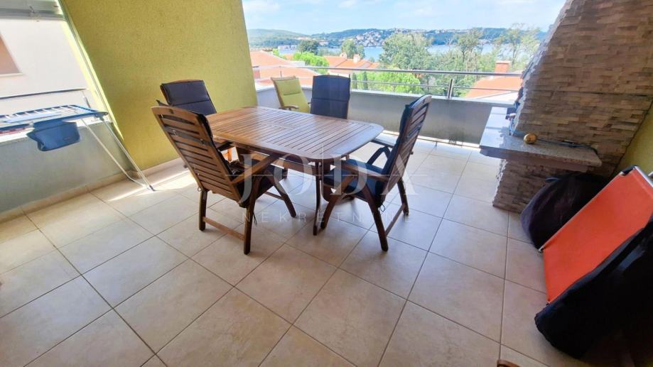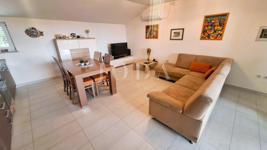 Uvala Soline, prodaje se apartman u visokom potkrovlju površine 78,62 m2. Apartman se sastoji od dvije spavaće sobe, dnevnog boravka s kuhinjom i blagovaonom, kupaone, toaleta, hodnika i prostrane lođe s pogledom na more. Apartman se prodaje namješten i opremljen, klimatiziran, spreman za korištenje. Lijepa lokacija 100 metara od mora.