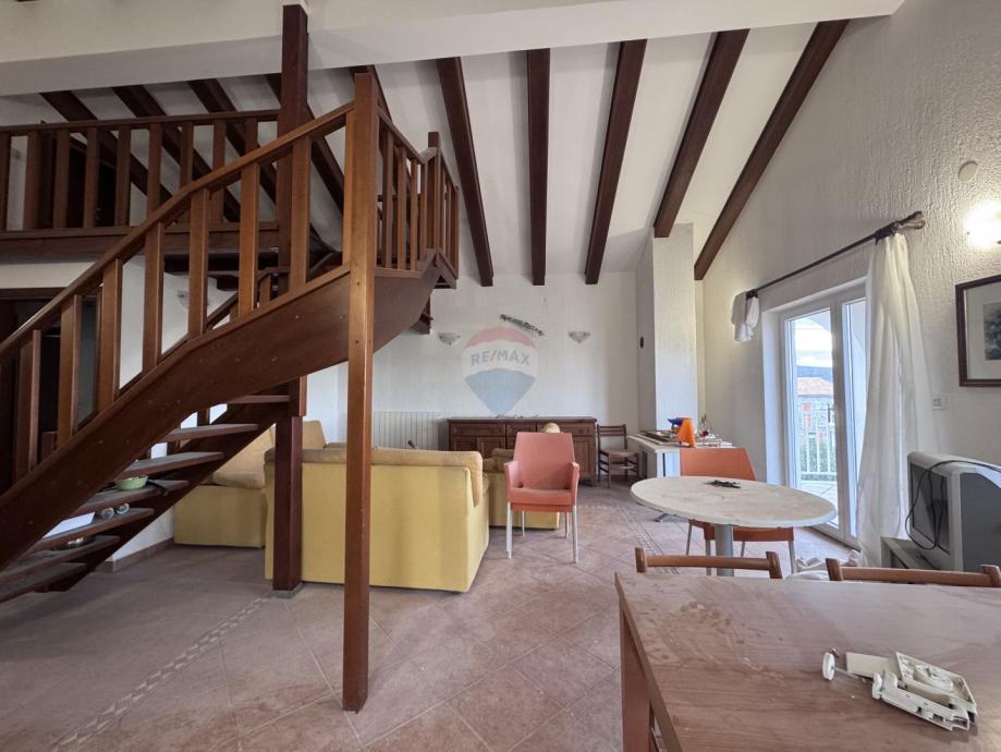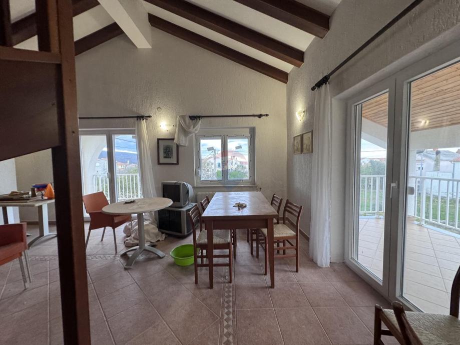 U mirnom okruženju u blizini grada Krka, prodaje se apartman na prvom katu obiteljske kuće s bazenom. Nekretnina je useljiva i prodaje se namještena.
