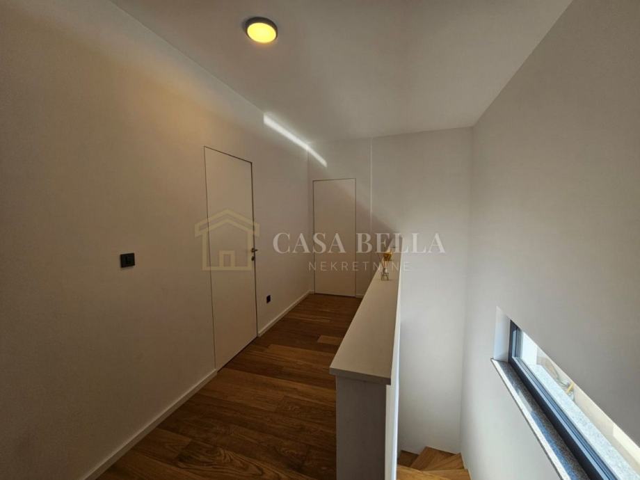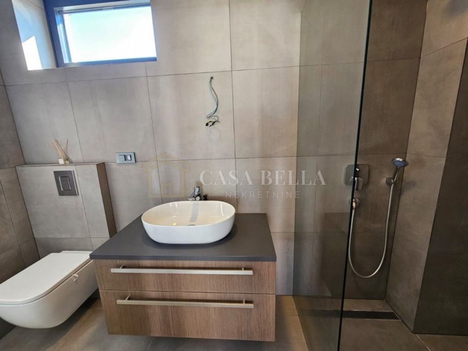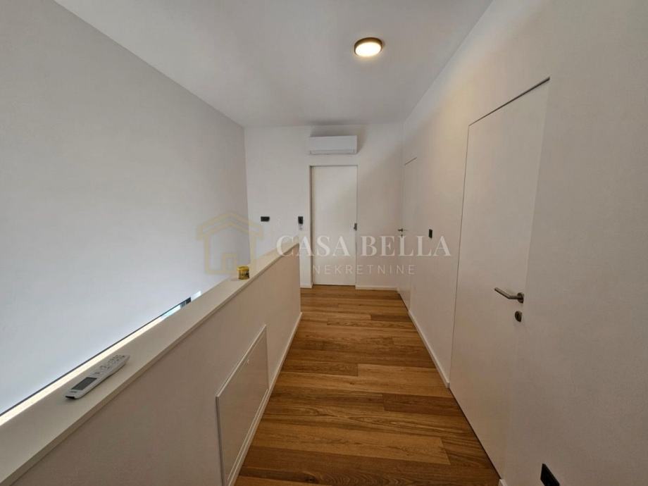 Vrhunska gradnja uključuje protupotresnu armirano-betonsku konstrukciju, 15 cm stiroporne izolacije, visokokvalitetnu Internorm PVC/ALU stolariju s troslojnim staklima i električnim roletama, te podno grijanje i hlađenje putem toplinske pumpe. Tu su i dodatni klima uređaji na oba kata, a kuća dolazi s pripremom za video nadzor.