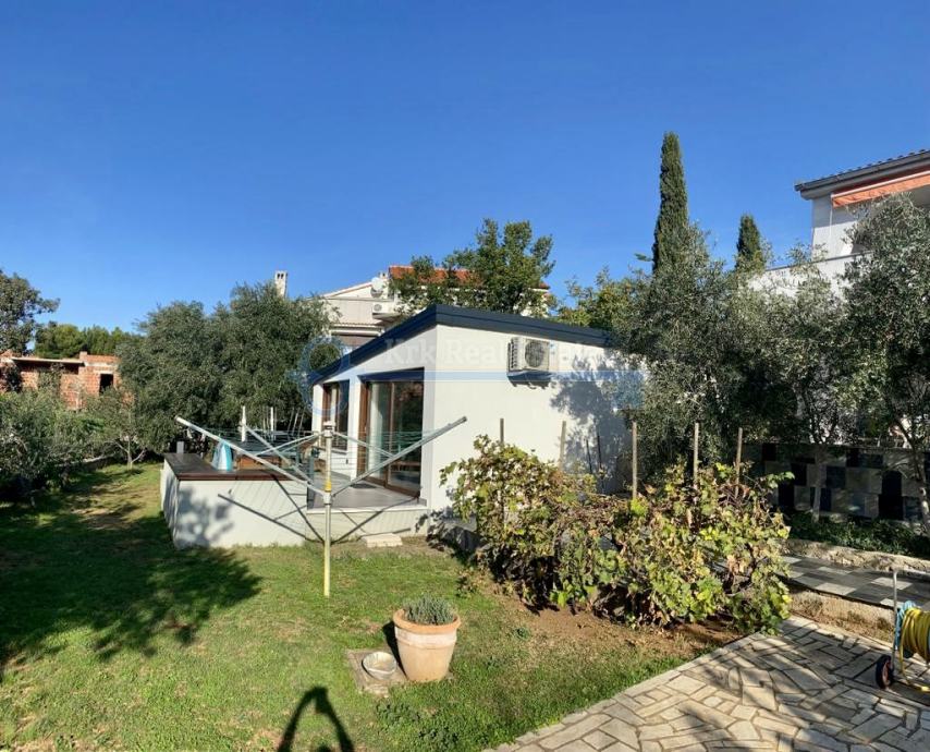 Na prodaju je dvojna kuća stambene površine od 200 m2 sa dodatnim objektom. Sastoji se od podruma, prizemlja i 1. kata. U prizemlju i na katu se nalaze 2 apartmana koja se sastoje od dnevnog boravka, kuhinje i blagovaonice, kupaonice i dvije spavaće sobe. Pripada joj okućnica površine 700 m2 sa dodatnim objektom, oidnosno studio apartmanom. Nalazi se udaljena od mora i plaže 450 metara.