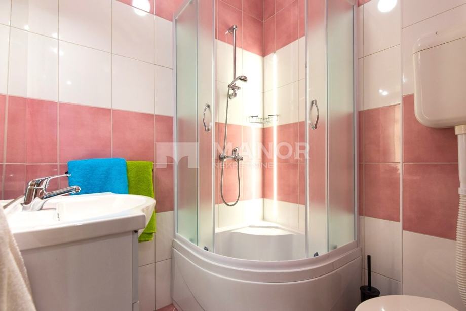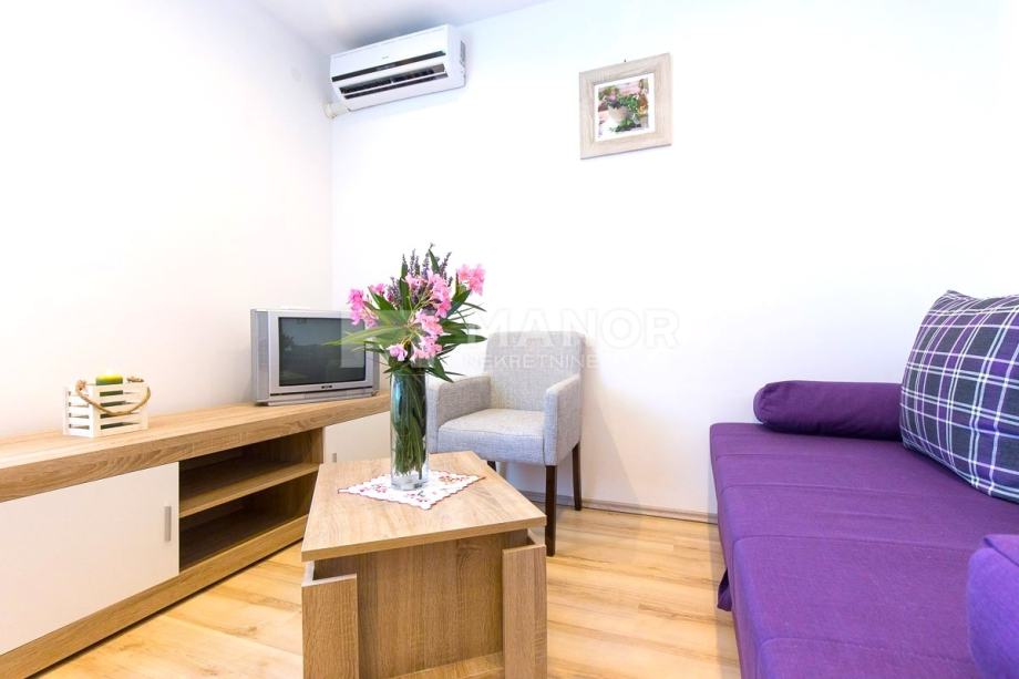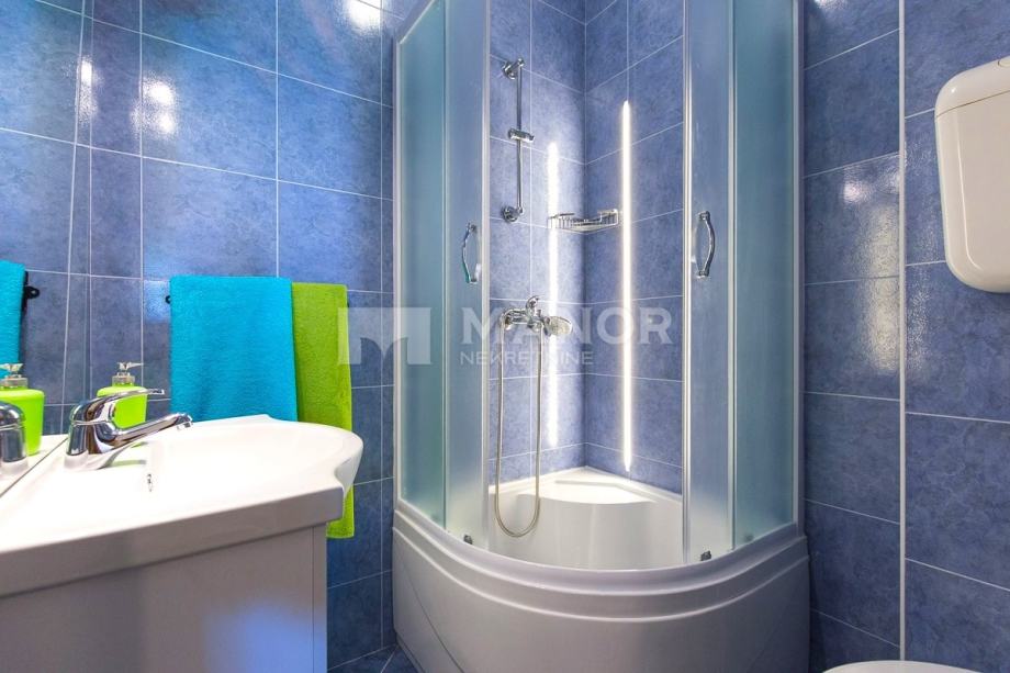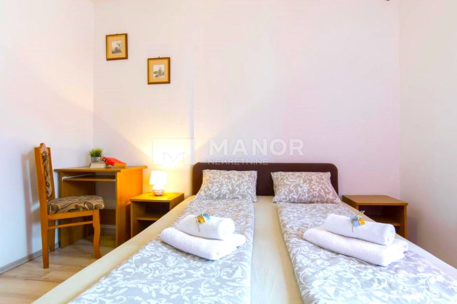 U prizemlju se nalazi apartman površine 120 m2 koji sadrži hodnik, dnevni boravak, kuhinju, blagovaonicu, tri spavaće sobe, kupaonicu i praonicu rublja.