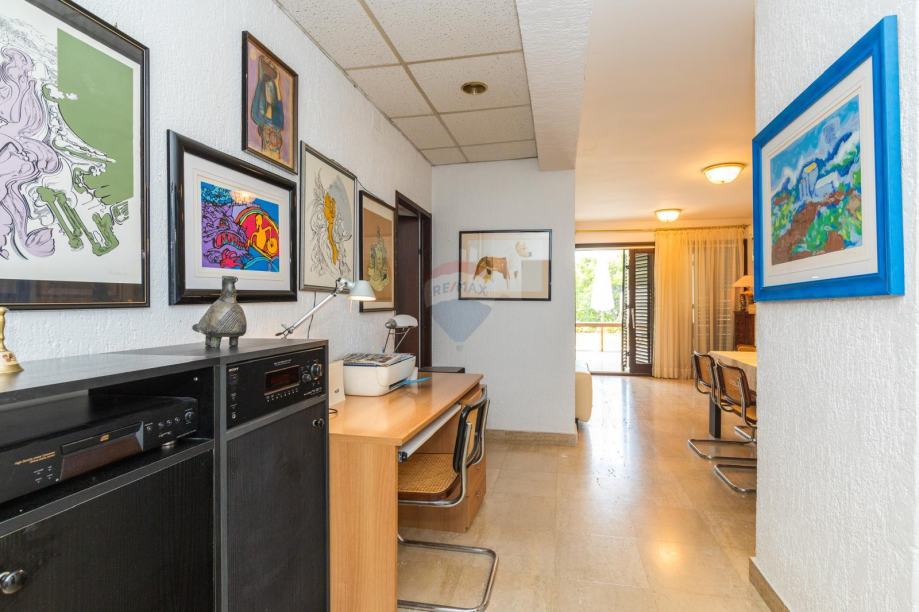 U prizemlju se nalazi prostrani stan koji obuhvaća dvije spavaće sobe, dnevni boravak, kuhinju s blagovaonicom te kupaonicu.