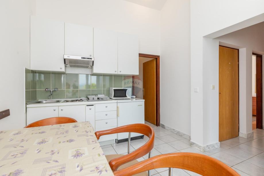 Apartmani na prvom i drugom katu imaju otvoren pogled na more, što dodatno povećava atraktivnost nekretnine.