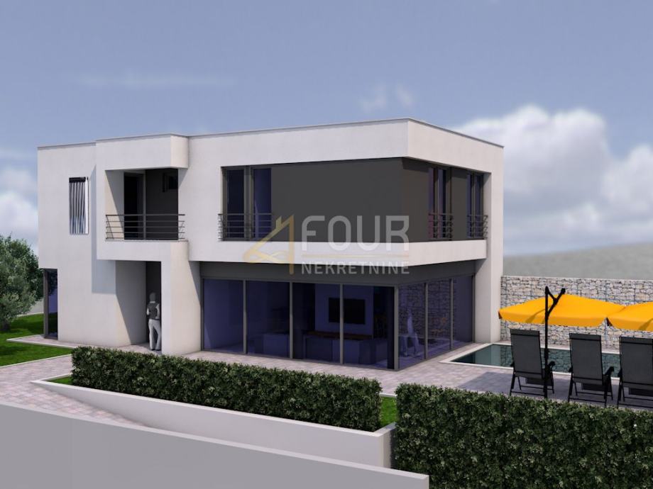 Otok Krk, Risika – izuzetno atraktivan građevinski teren s pravomoćnom građevinskom dozvolom za izgradnju kuće s bazenom, čija je gradnja započeta.