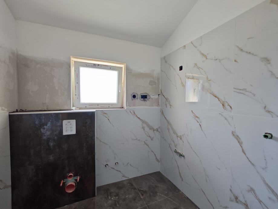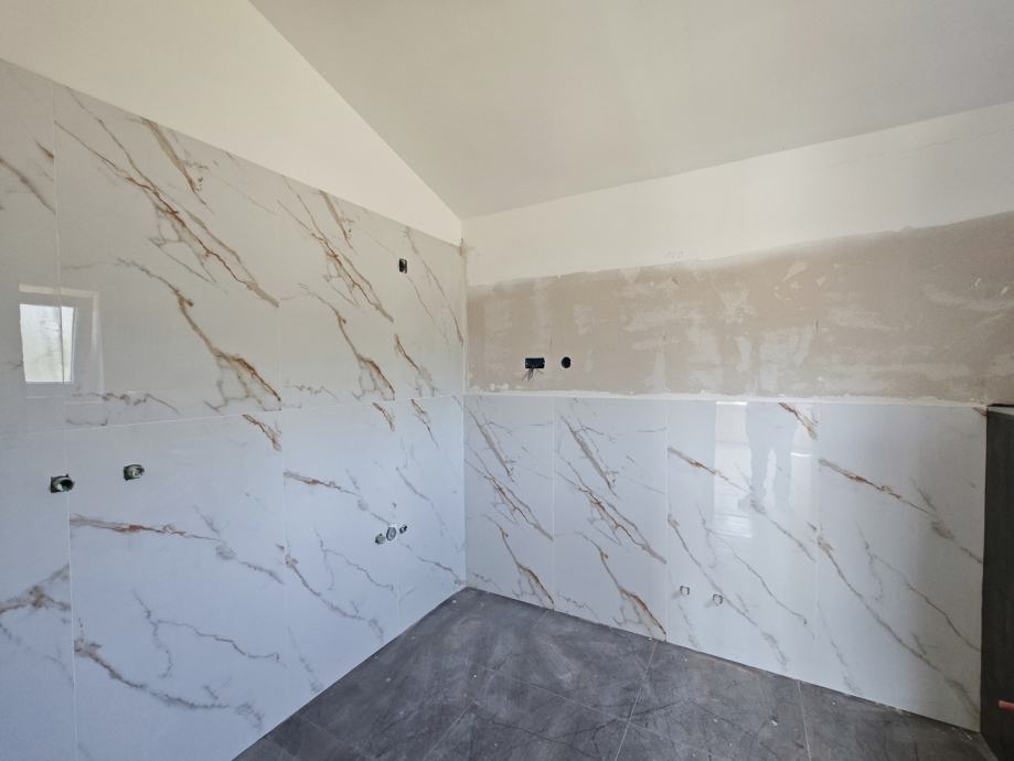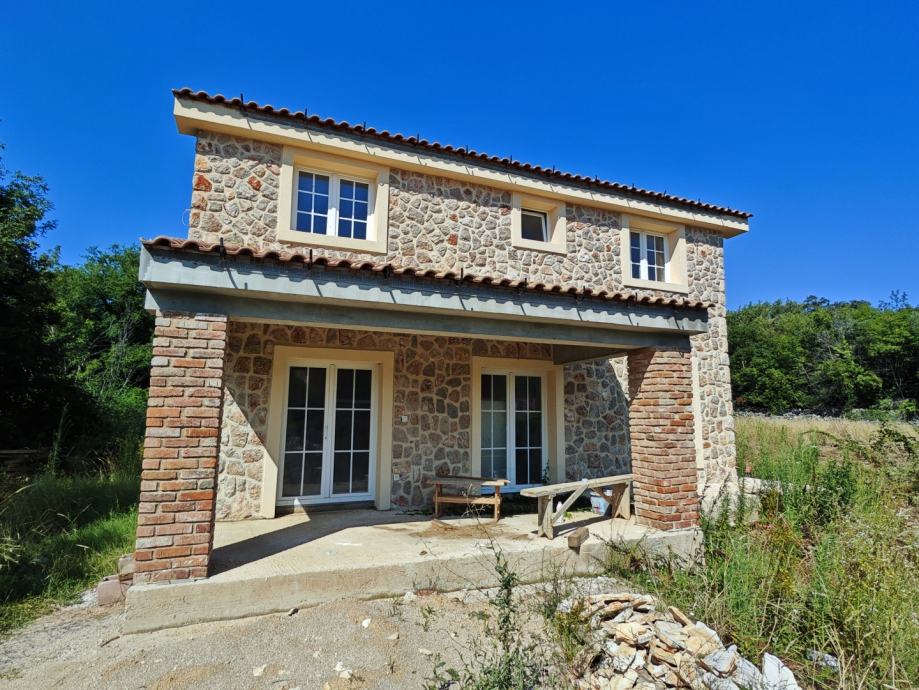 Novoizgrađena kamena, dvojna kuća nalazi se uz rub građevinske zone u malom i mirnom mjestu blizu grada Vrbnika. U prizemlju se nalazi spremište, kupaonica, kuhinja, blagovaonica i dnevni boravak. Na kat vodi unutrašnje stepenište na kojem se nalaze dve kupaonice, tri sobe od kojih jedna ima vlastitu kupaonicu. Kvalitetna gradnja i materijali, kamena fasada, PVC stolarija, podno grijanje. Na okućnici se nalazi bazen i sunčalište. Cijena za kupovinu preko firme je 430000 eur + prijenos porezne obveze